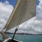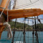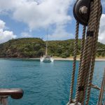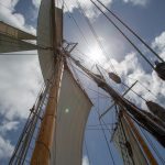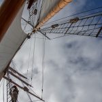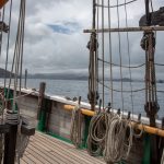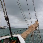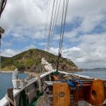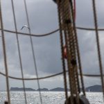 Mit Motor ging es raus auf´s Meer, wo dann alsbald die Segel gehisst wurden. Sehr beeindruckend, toll anzusehen und ein Erhabenes Gefühl, nur vom Wind auf diesem schönen Schiff vorangetrieben zu werden. Wieviel Know-How dafür nötig ist, merkt man in Anbetracht der vielen Taue, Seile und Handgriffe schnell. Und es gab einen guten Eindruck davon, wie es früher wohl gewesen sein muss. Auch die Frage, wo man als Entdecker wohl an Land gehen würde? Und was macht man dann da? 🙂