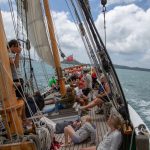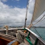 Das schöne Segelschiff R. Tucker Thompson ist ein Non-Profit-Projekt, d.h. die Erlöse der Touri-Bootstouren (155 NZD / ~93€ p.P.) fließen in den Erhalt des Schiffes und in die Ausbildung von jeweils 12 Jugendlichen, die im Winter für 10-14 Tage anheuren können. Danach können sie das Schiff ohne Zutun der Stamm-Crew zurück nach Russell segeln. Von wo auch immer 🙂