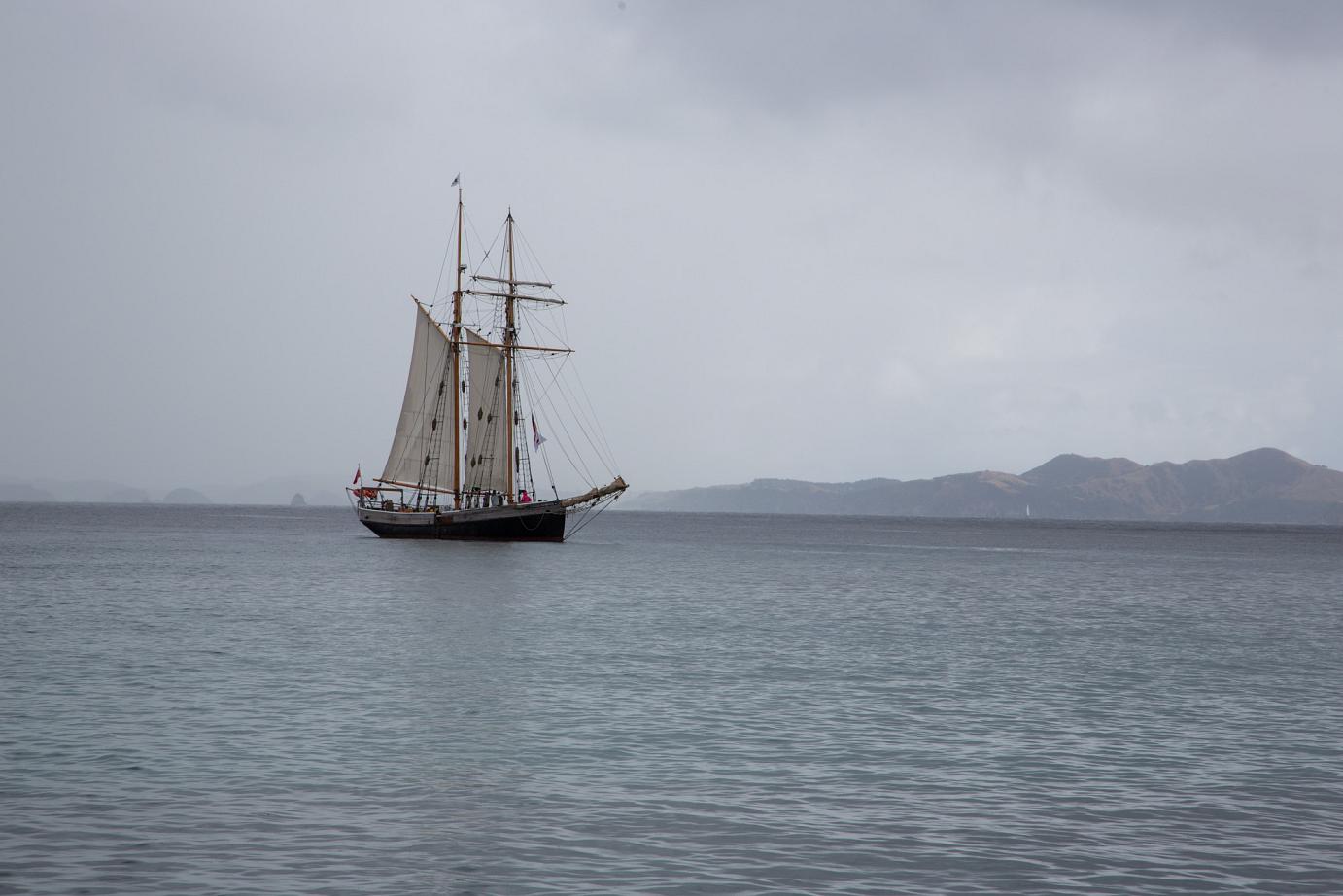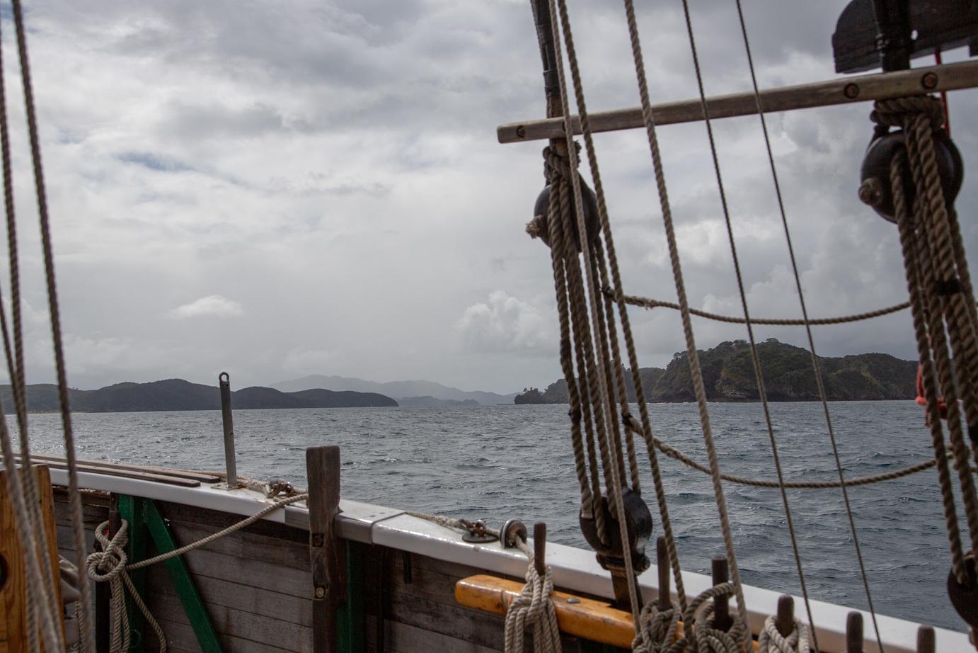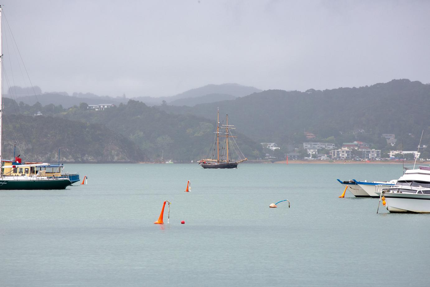 Nach einem Spaziergang durch das beschauliche Russell und einem leckeren Frühstück im ´Butterfish´ konnten wir das schöne Segelschiff schon aus weiter Ferne beobachten. Kurz vor 10:00 Uhr durften wir dann an Board und es gab ein kurzes Briefing von der sehr netten, lockeren und coolen Crew, bei dem uns der Kapitän versprach, Ausschau nach schönem Wetter zu halten – wir wurden nicht enttäuscht.