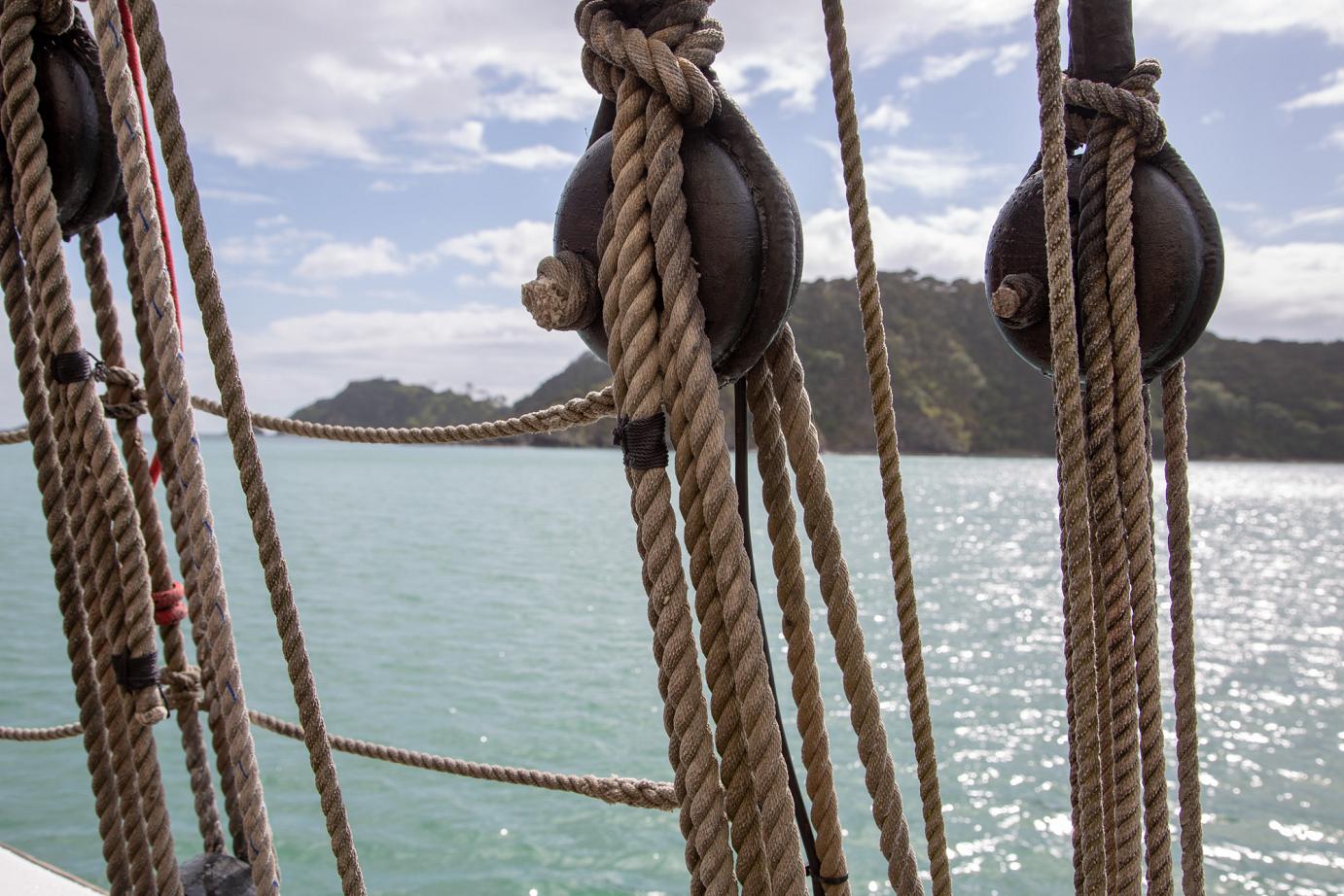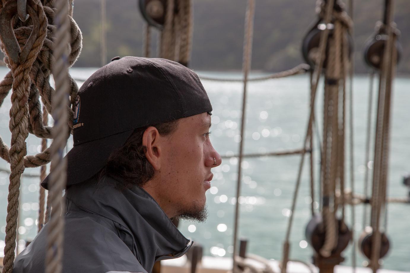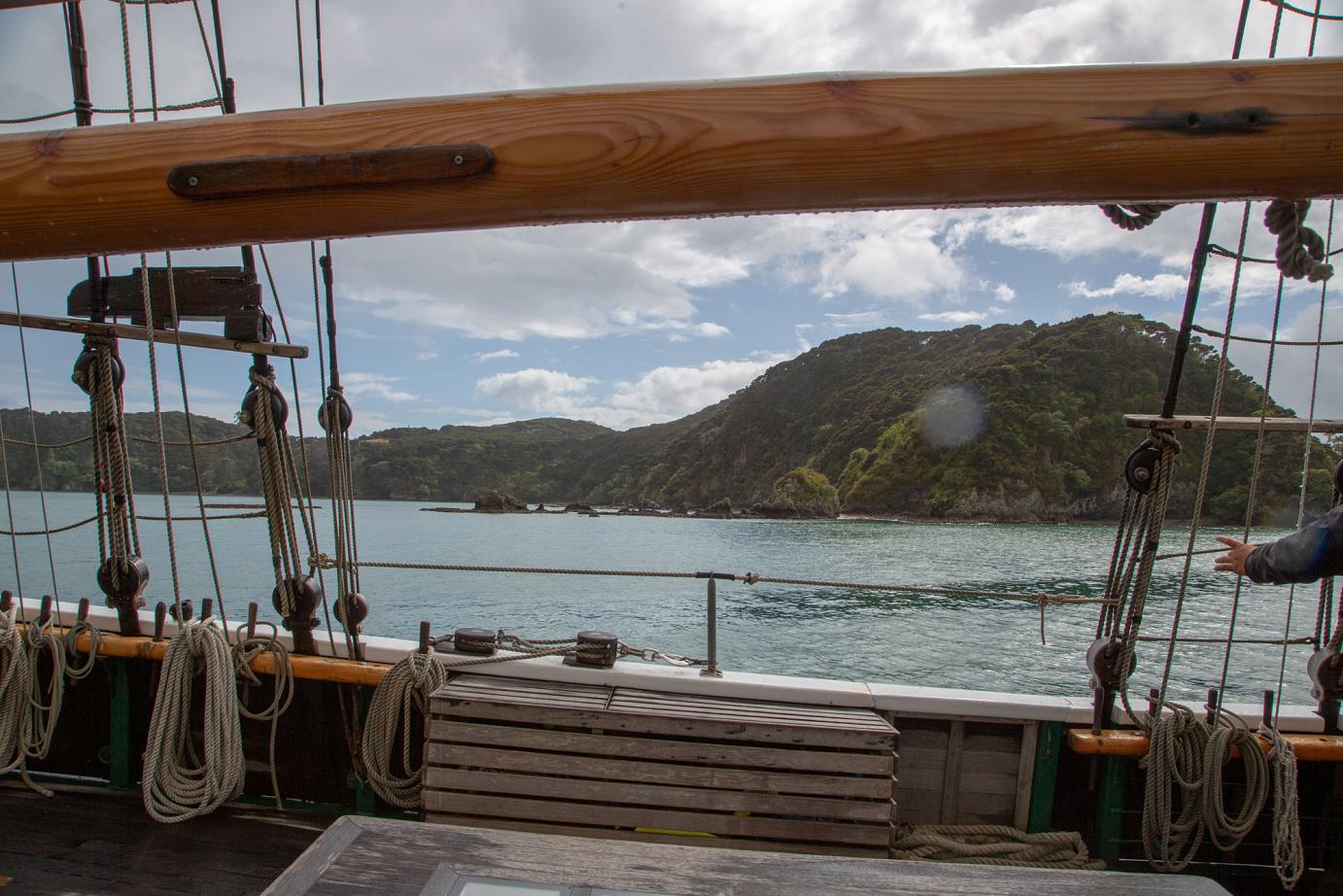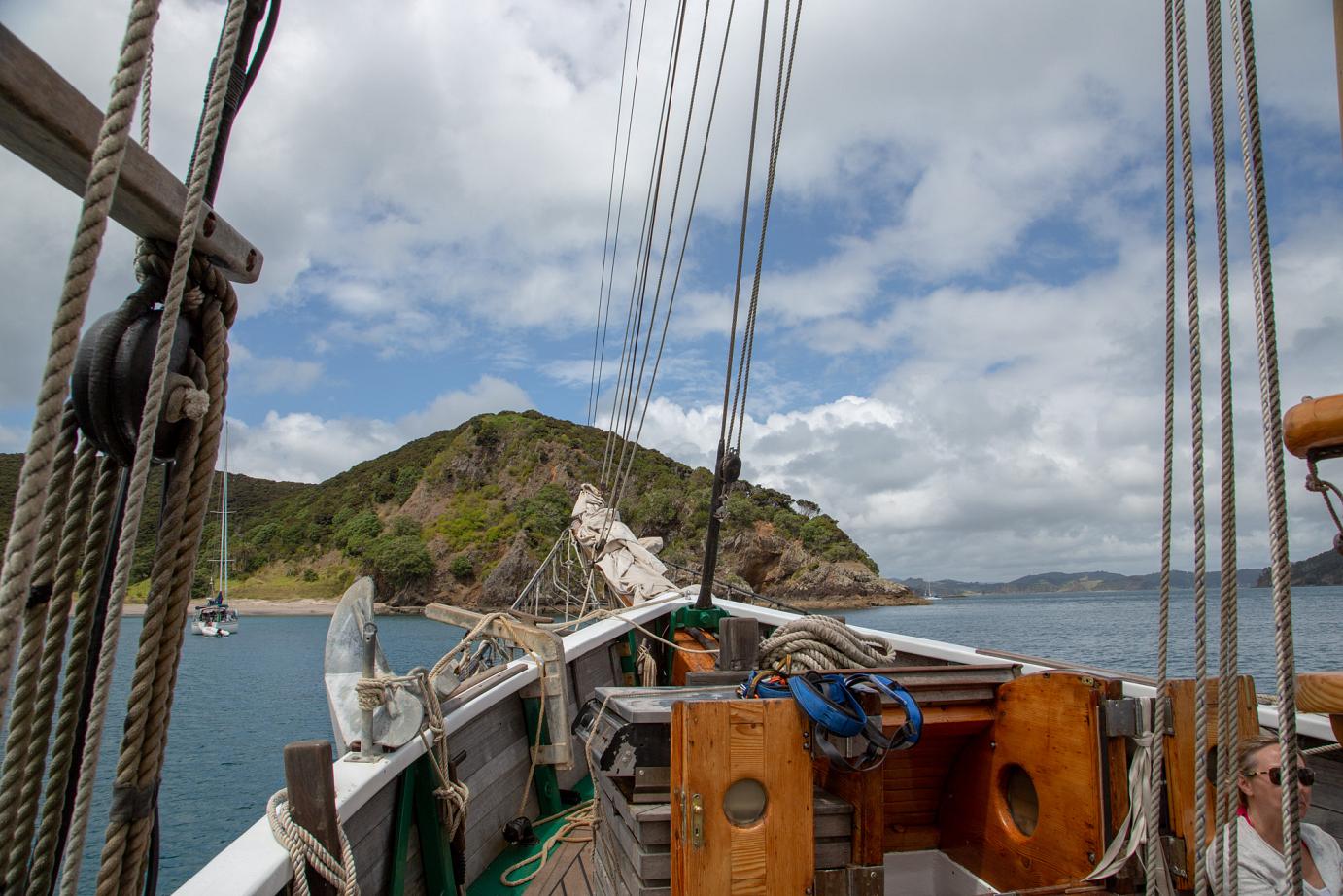 Das schöne Segelschiff R. Tucker Thompson ist ein Non-Profit-Projekt, d.h. die Erlöse der Touri-Bootstouren (155 NZD / ~93€ p.P.) fließen in den Erhalt des Schiffes und in die Ausbildung von jeweils 12 Jugendlichen, die im Winter für 10-14 Tage anheuren können. Danach können sie das Schiff ohne Zutun der Stamm-Crew zurück nach Russell segeln. Von wo auch immer 🙂