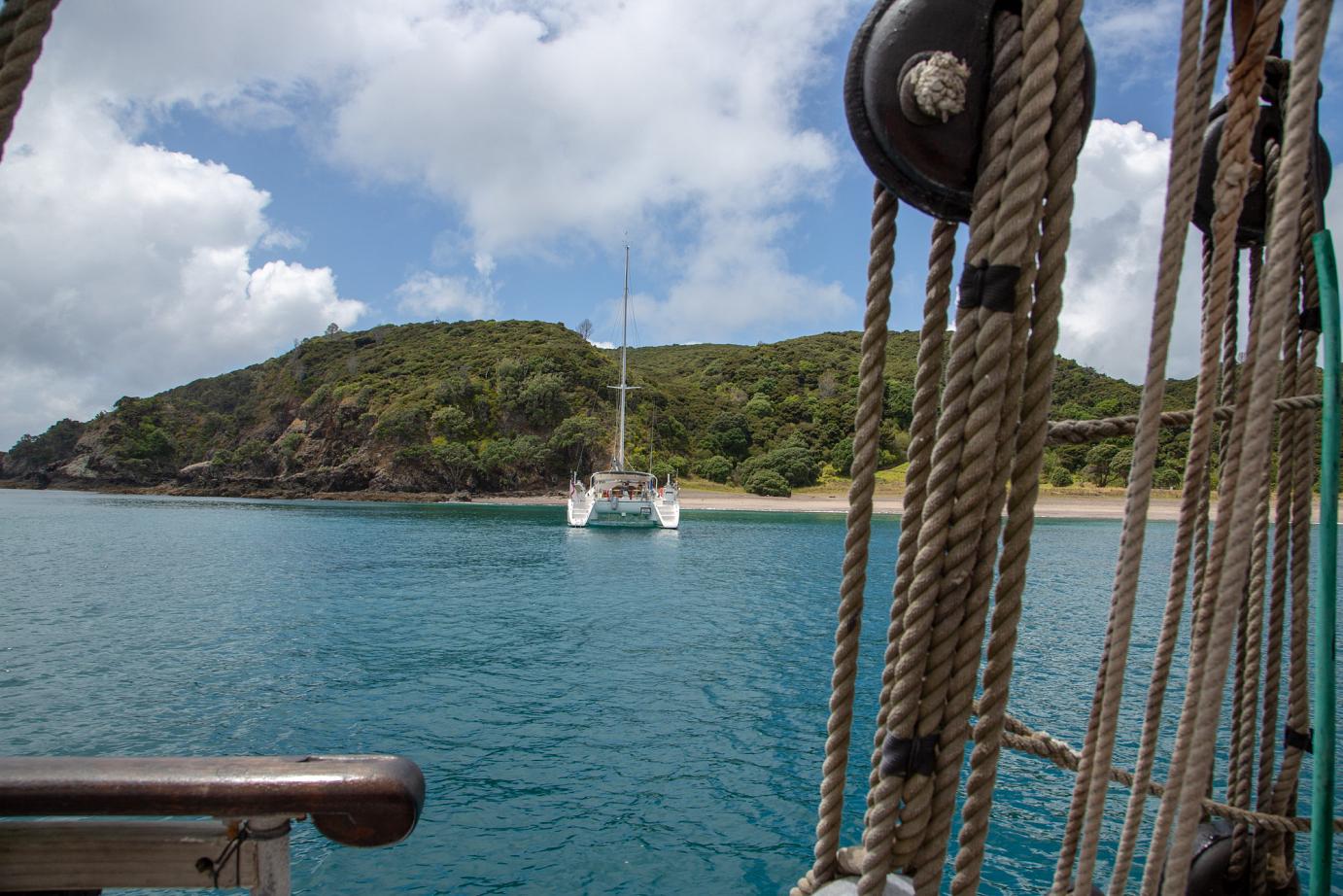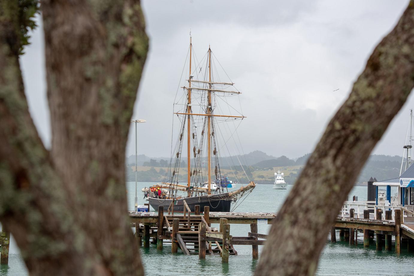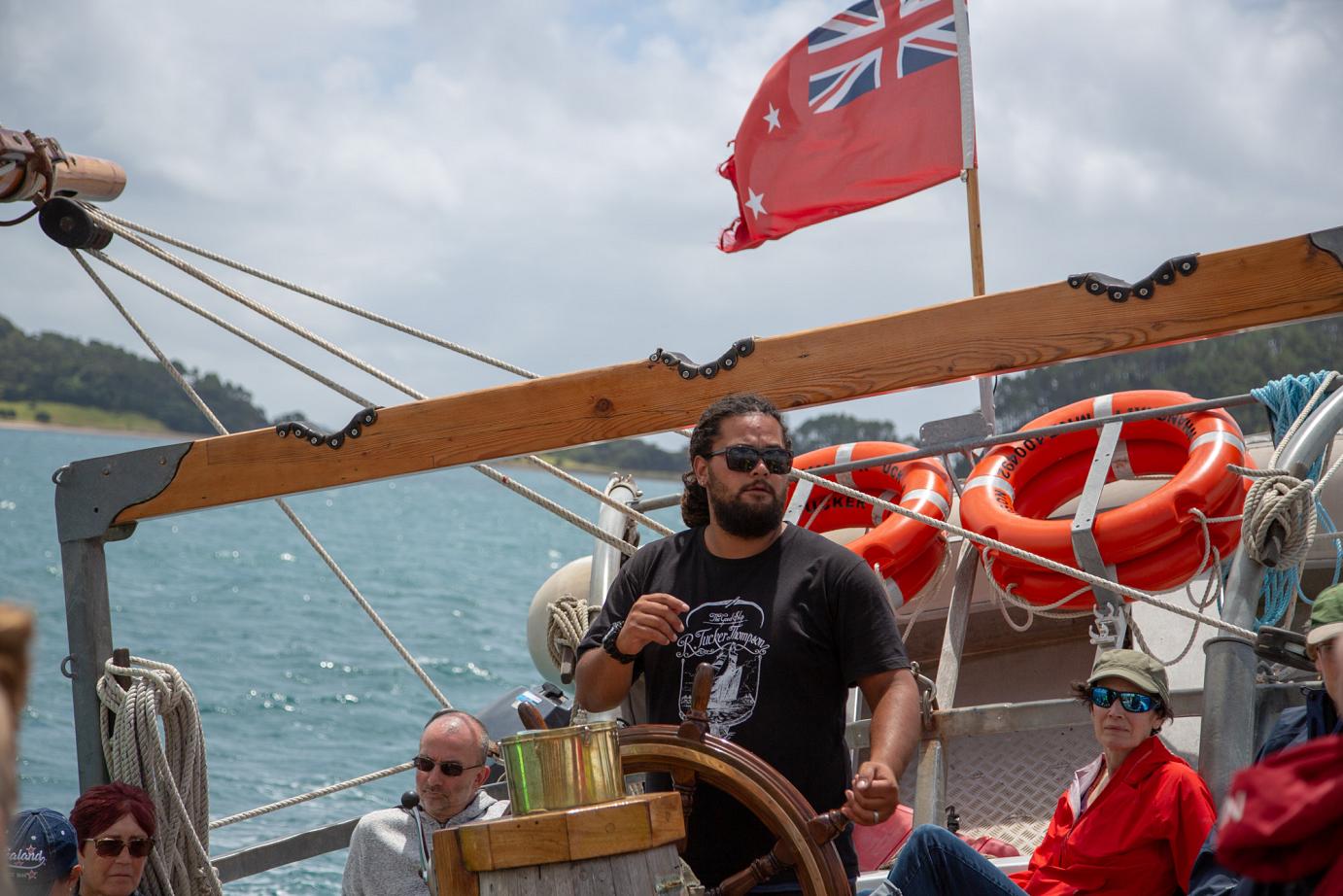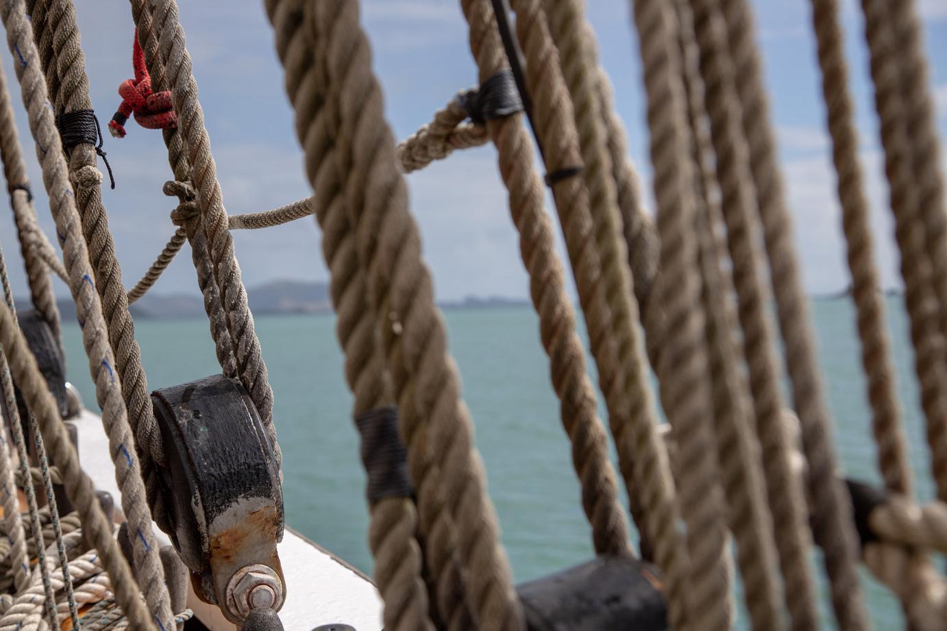 Das schöne Segelschiff R. Tucker Thompson ist ein Non-Profit-Projekt, d.h. die Erlöse der Touri-Bootstouren (155 NZD / ~93€ p.P.) fließen in den Erhalt des Schiffes und in die Ausbildung von jeweils 12 Jugendlichen, die im Winter für 10-14 Tage anheuren können. Danach können sie das Schiff ohne Zutun der Stamm-Crew zurück nach Russell segeln. Von wo auch immer 🙂