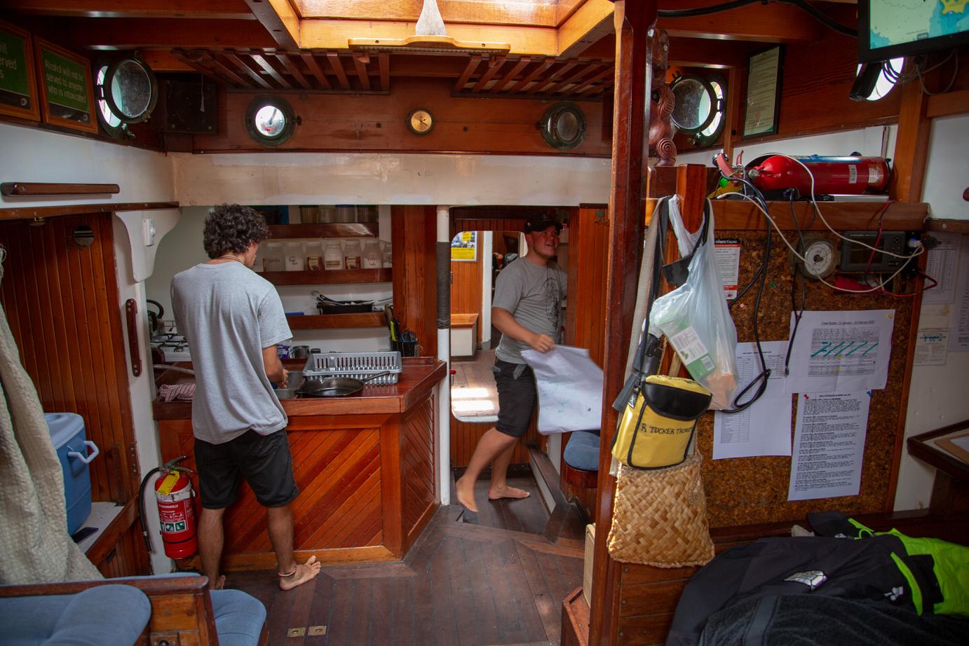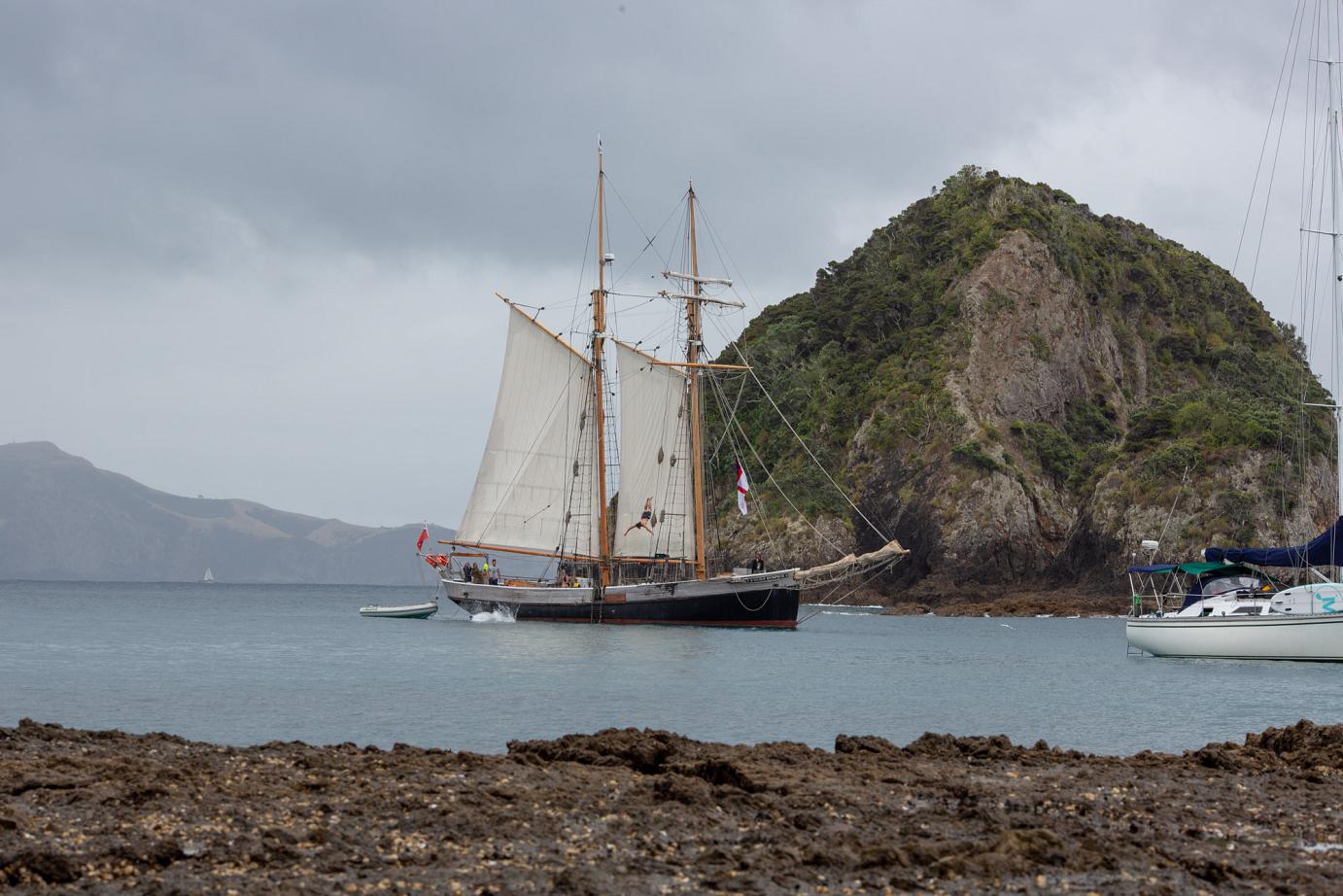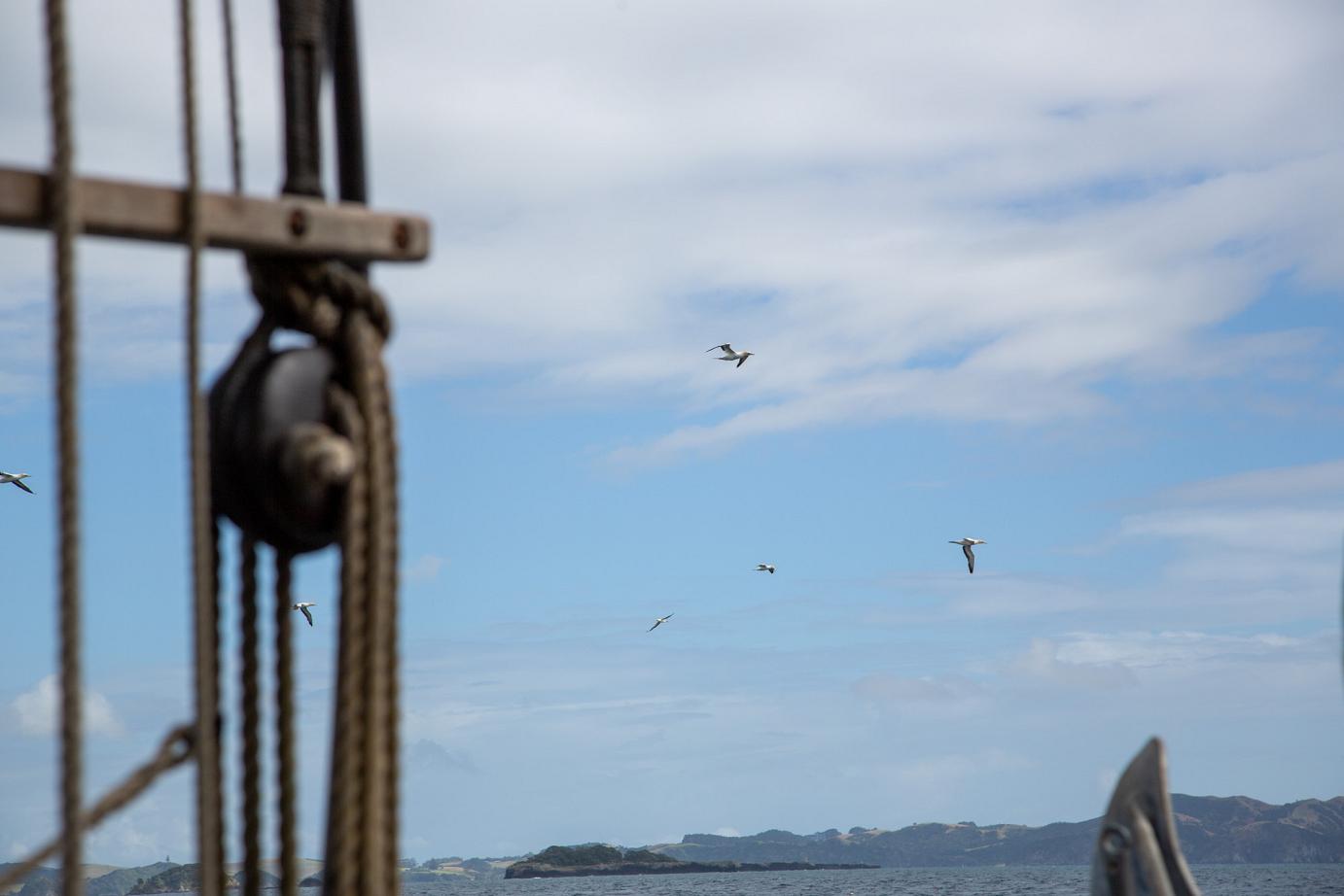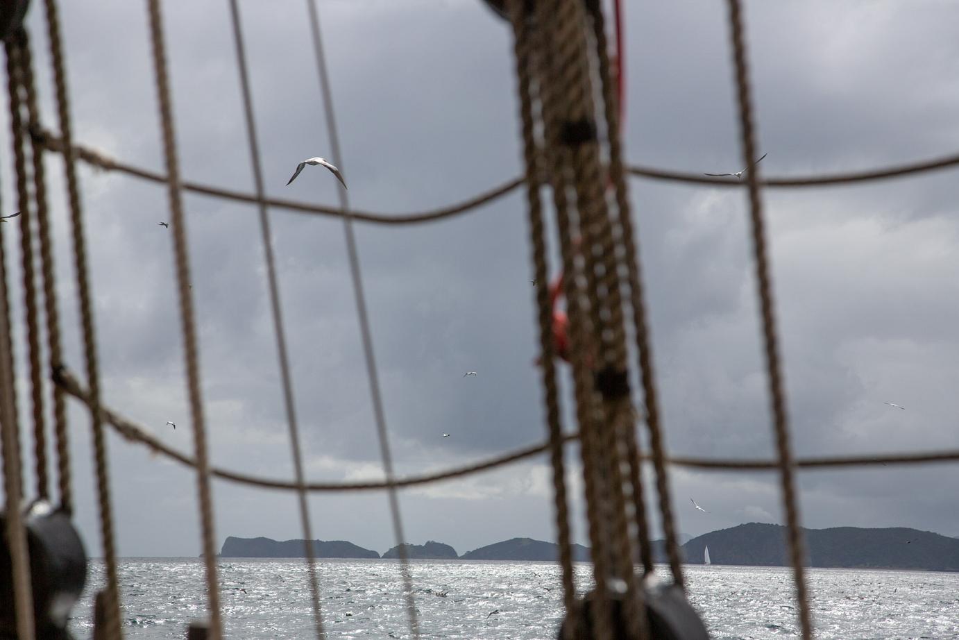 Das schöne Segelschiff R. Tucker Thompson ist ein Non-Profit-Projekt, d.h. die Erlöse der Touri-Bootstouren (155 NZD / ~93€ p.P.) fließen in den Erhalt des Schiffes und in die Ausbildung von jeweils 12 Jugendlichen, die im Winter für 10-14 Tage anheuren können. Danach können sie das Schiff ohne Zutun der Stamm-Crew zurück nach Russell segeln. Von wo auch immer 🙂