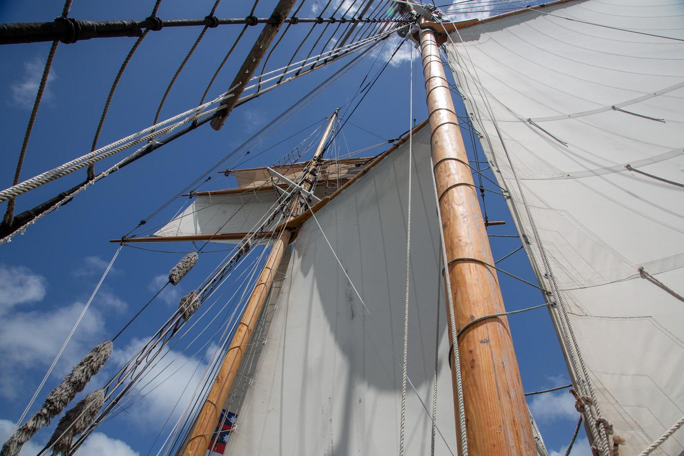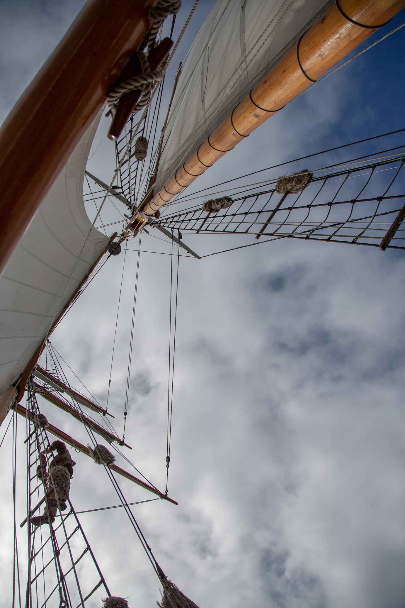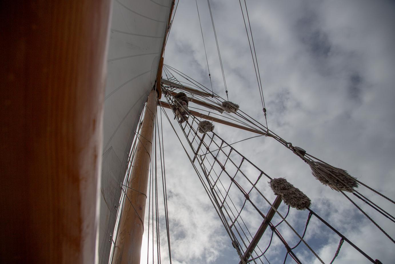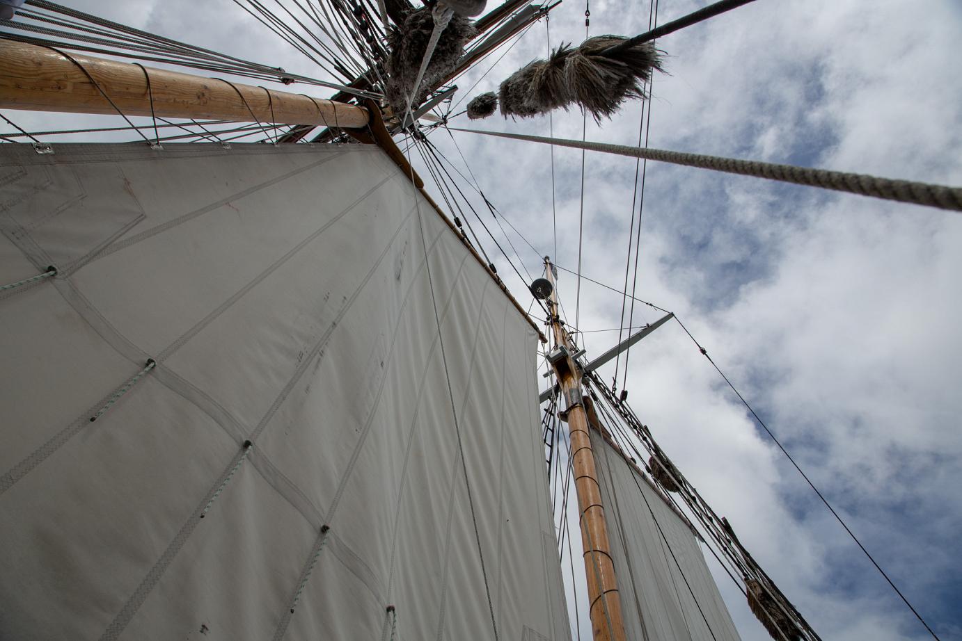 Mit Motor ging es raus auf´s Meer, wo dann alsbald die Segel gehisst wurden. Sehr beeindruckend, toll anzusehen und ein Erhabenes Gefühl, nur vom Wind auf diesem schönen Schiff vorangetrieben zu werden. Wieviel Know-How dafür nötig ist, merkt man in Anbetracht der vielen Taue, Seile und Handgriffe schnell. Und es gab einen guten Eindruck davon, wie es früher wohl gewesen sein muss. Auch die Frage, wo man als Entdecker wohl an Land gehen würde? Und was macht man dann da? 🙂