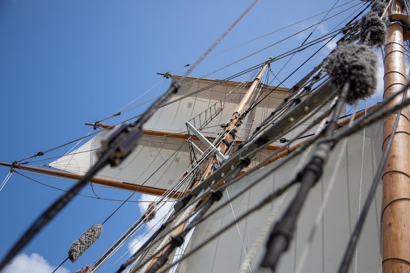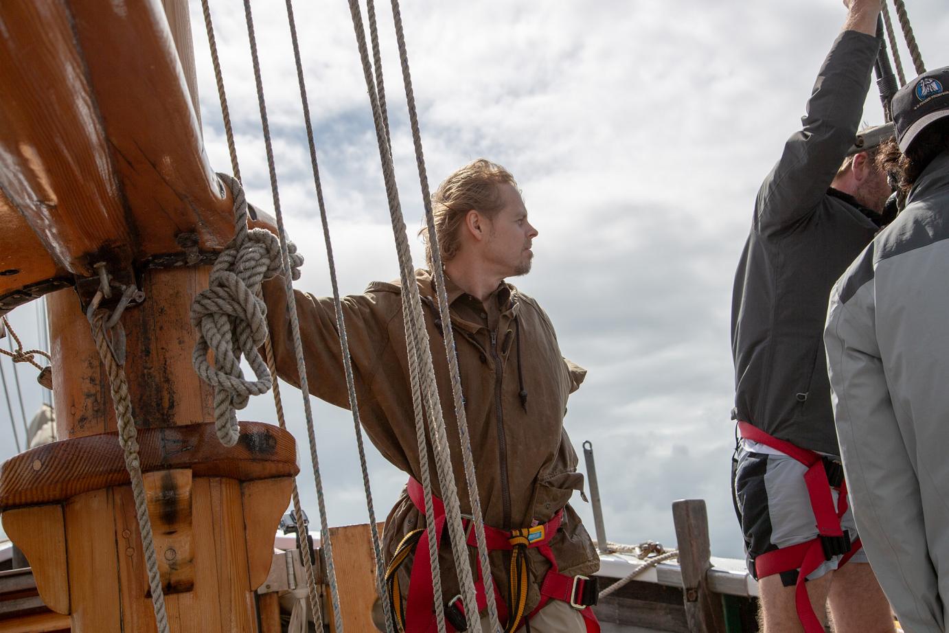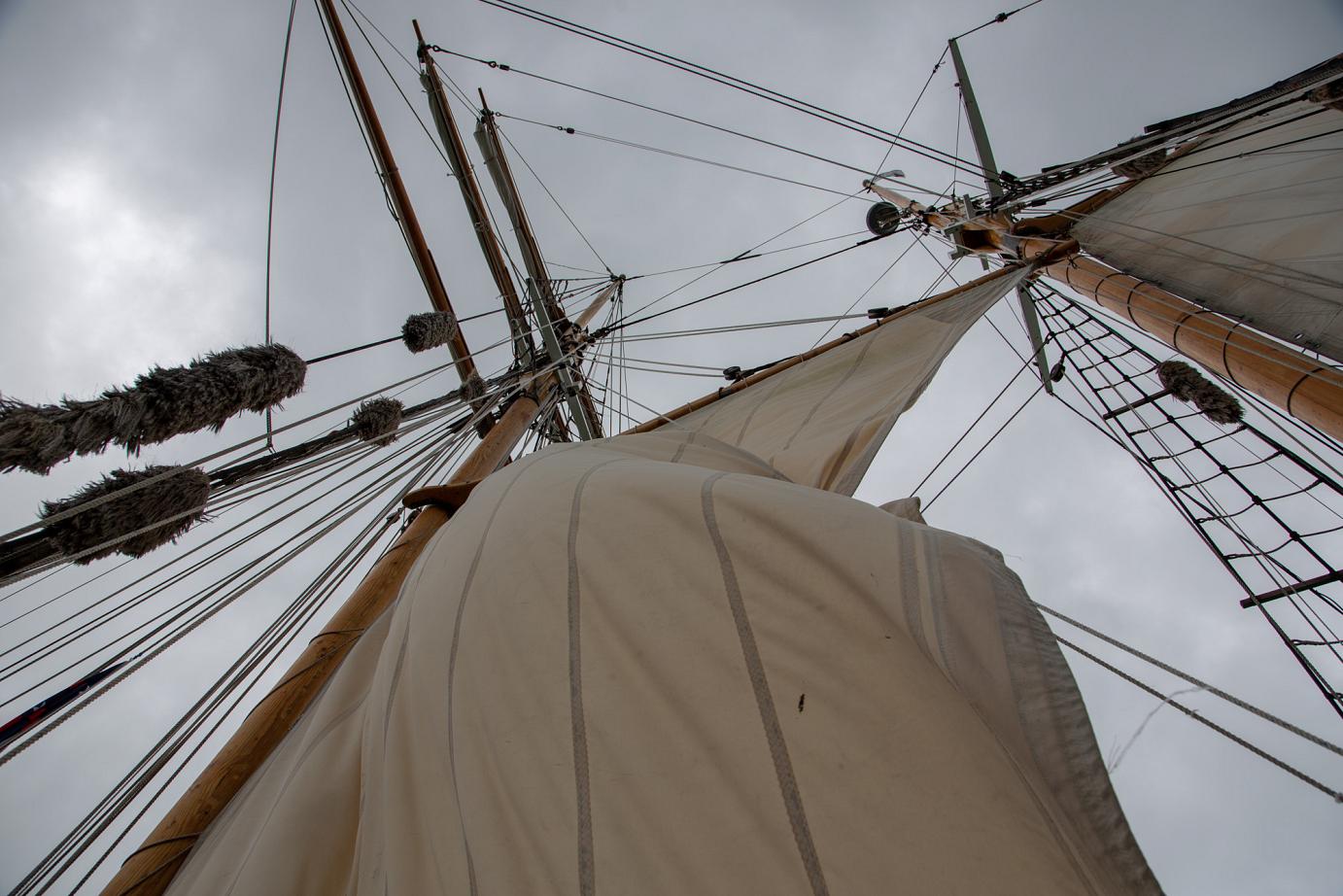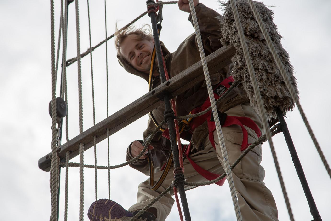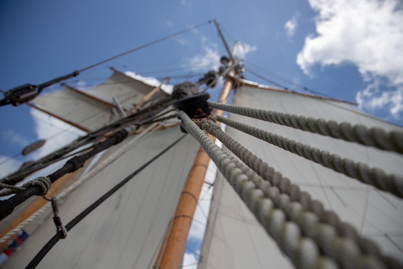 Mit Motor ging es raus auf´s Meer, wo dann alsbald die Segel gehisst wurden. Sehr beeindruckend, toll anzusehen und ein Erhabenes Gefühl, nur vom Wind auf diesem schönen Schiff vorangetrieben zu werden. Wieviel Know-How dafür nötig ist, merkt man in Anbetracht der vielen Taue, Seile und Handgriffe schnell. Und es gab einen guten Eindruck davon, wie es früher wohl gewesen sein muss. Auch die Frage, wo man als Entdecker wohl an Land gehen würde? Und was macht man dann da? 🙂