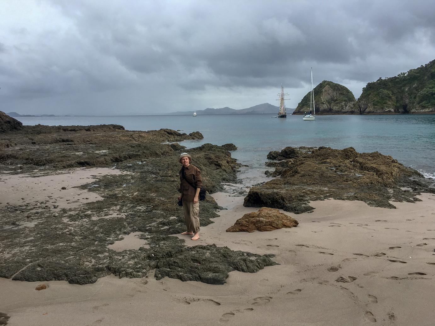 Zwischendrin konnte man auf einen der Masten hochklettern, was Stephan natürlich gleich getan hat. Unsere Reise führte uns zu Motorua Island, wo wir in drei Fuhren mit dem Motorschlauchboot an Land gebracht wurden – wir waren die Ersten und die Letzten 🙂 Dort konnten wir 1,5 Stunden rumschlendern, baden und die schönen Gegend genießen. Auf dieser Insel fand man übrigens die ältesten Überbleibsel der ersten polynesischen Siedler.