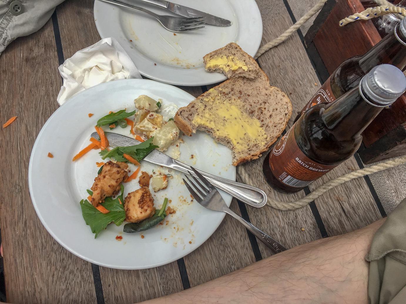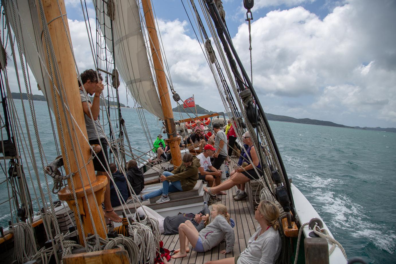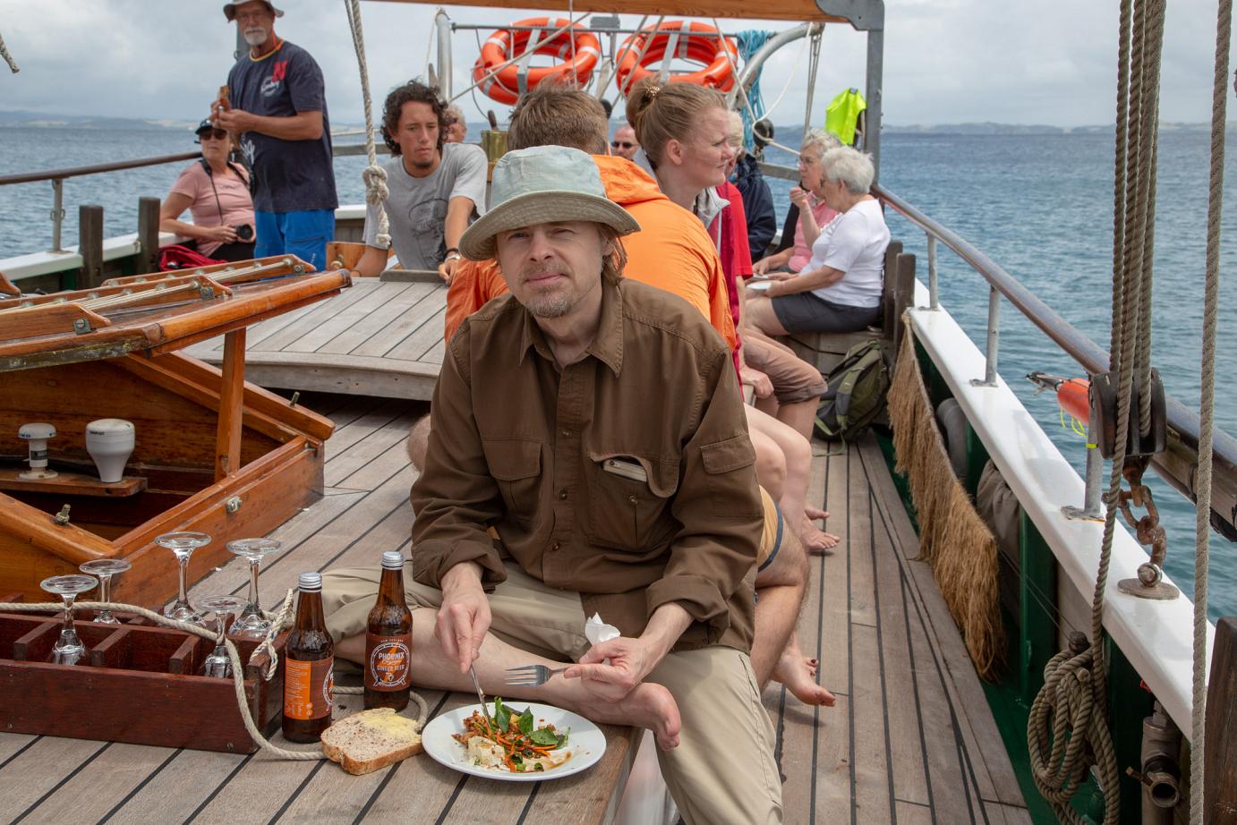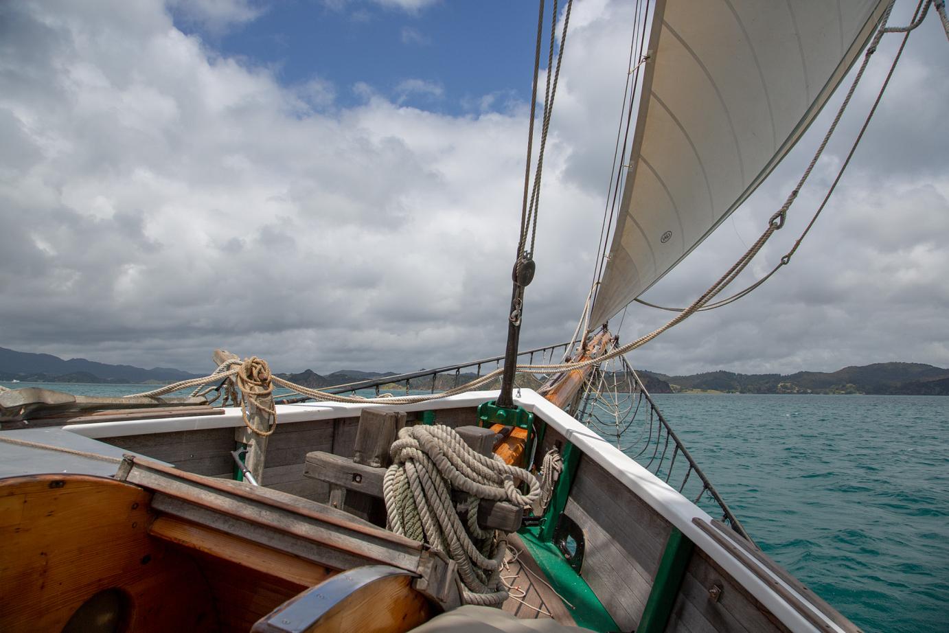 Zurück an Board, gab es ein einfaches, aber sehr leckeres Essen. Anschließend wurden wir bei auffrischender Brise und guter Schräglage wieder zurück nach Russell gebracht.