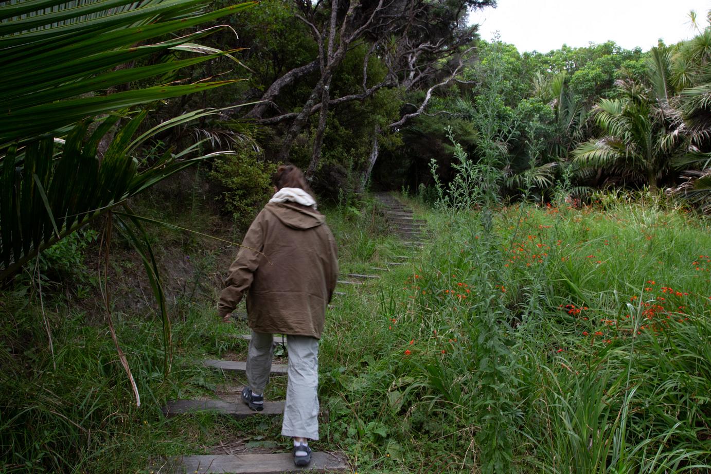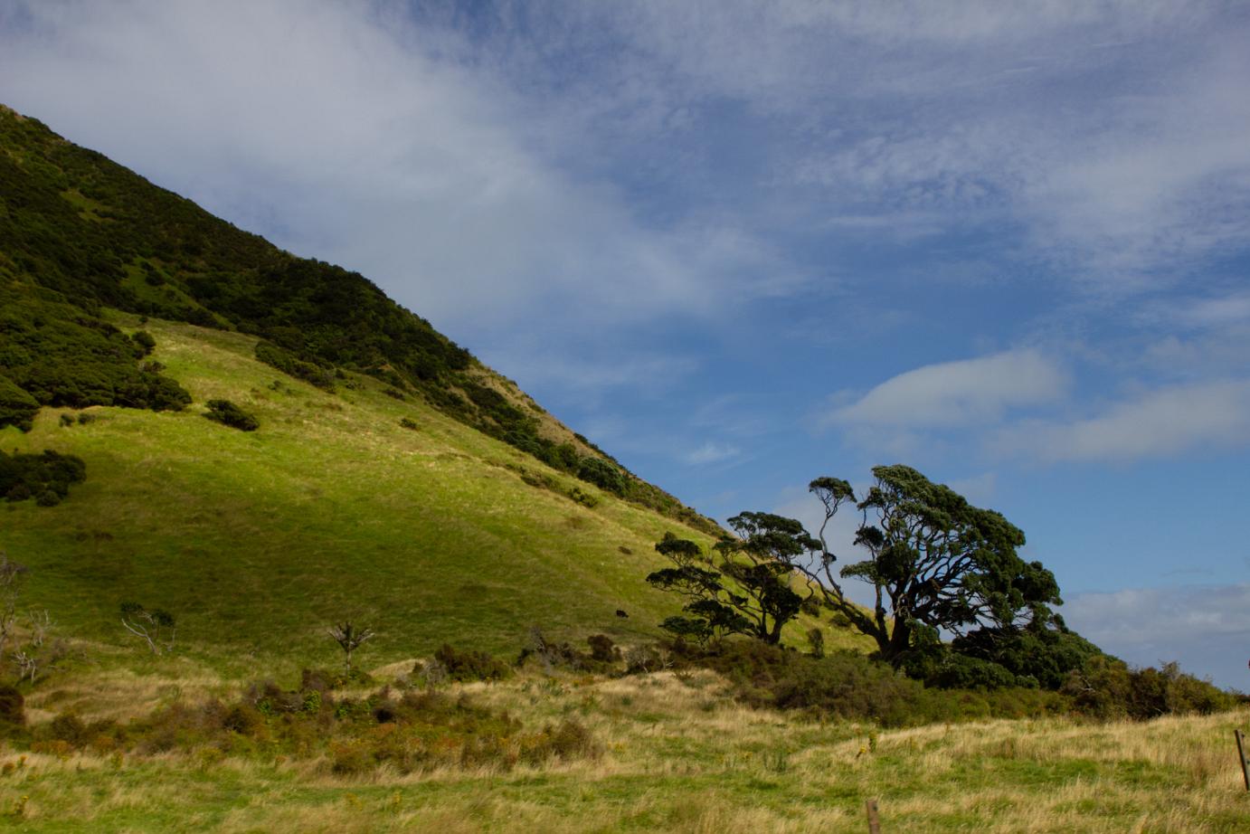 Nach dieser einstündigen Fahrt von Te Araroa zum East Cape war die Straße bei einem kleinen Gehöft zu Ende. Wir waren ganz allein und haben noch eine schöne Abendwanderung gemacht, 800 Stufen rauf zum Leuchtturm.