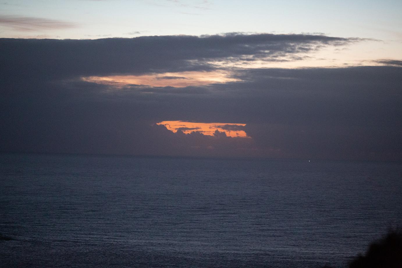 Etwas zu früh, aber alleine und glücklich, genoss er die tolle Morgenstimmung. Mit der Sonne war´s geht so, eine Wolkenfront versperrte den Horizont und damit den Aufgang der puren Sonne über dem Meer. Nach und nach trudelten noch weitere “Erstlinge” ein und Stephan begann seinen Abgang.