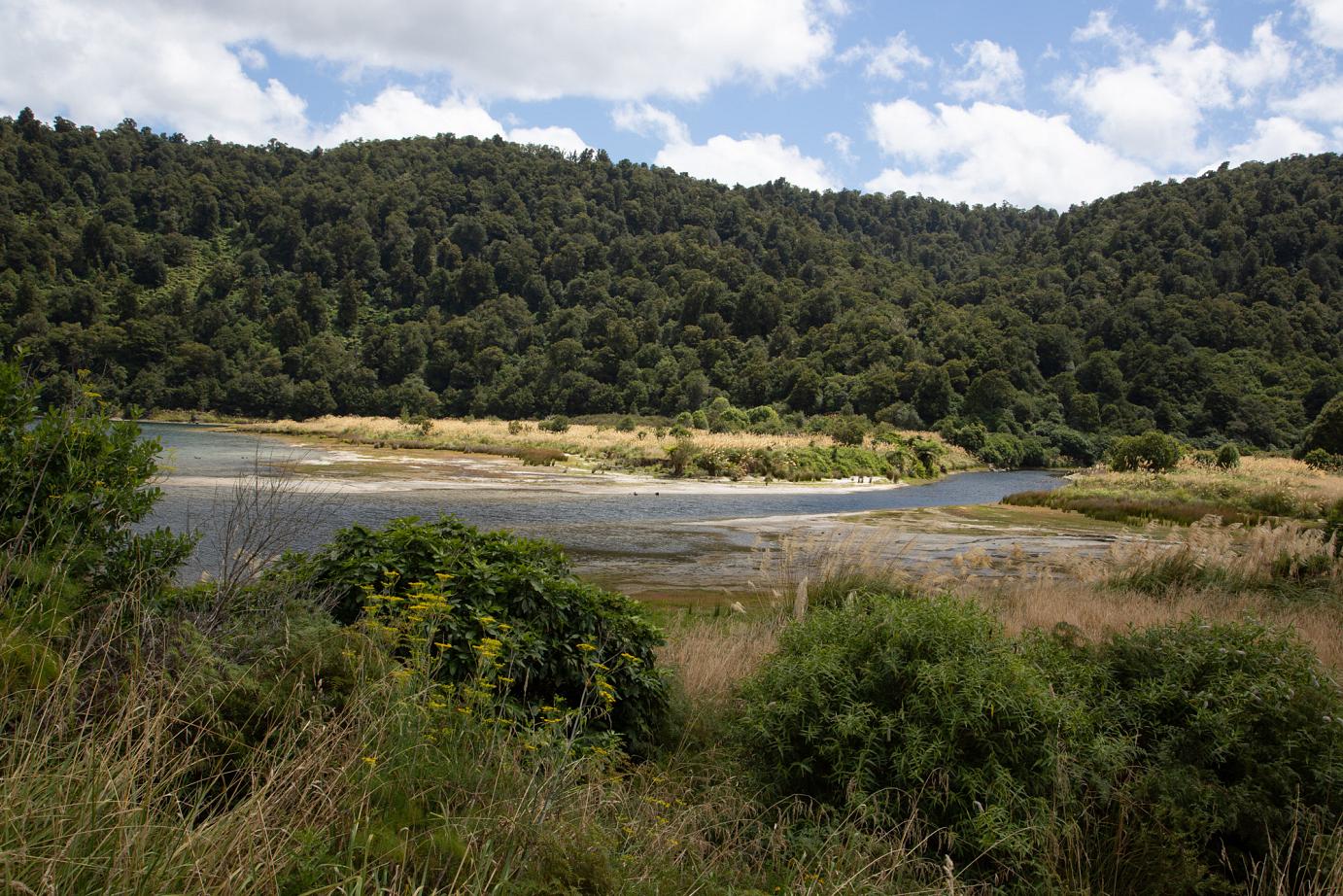 Die Strecke zum Campingplatz beim Lake Waikaremoana im Te Urewera Nationalpark war trotz der vielen langen Schotterabschnitte der Straße sehr schön. Wir sind spät angekommen und haben richtig gut geschlafen, bis wir in der Früh von einem nervigen Flattergeräusch geweckt wurden. Wir haben eine ganze Weile gebraucht, um rauszubekommen, was das sonderbare Geräusch ist und wo es herkam. Es waren zwei superlaute Zirpendinger, die es hier überall gibt. Die beiden sind jeweils mit einem Ihrer Flügel auf dem feuchten Campervandach kleben geblieben und haben versucht sich zu lösen. Einen konnte Stephan lösen, der andere war unerreichbar und musste warten, bis das Dach getrocknet war. Die sind wirklich extrem laut, groß und irgendwie superdoof 🙂
