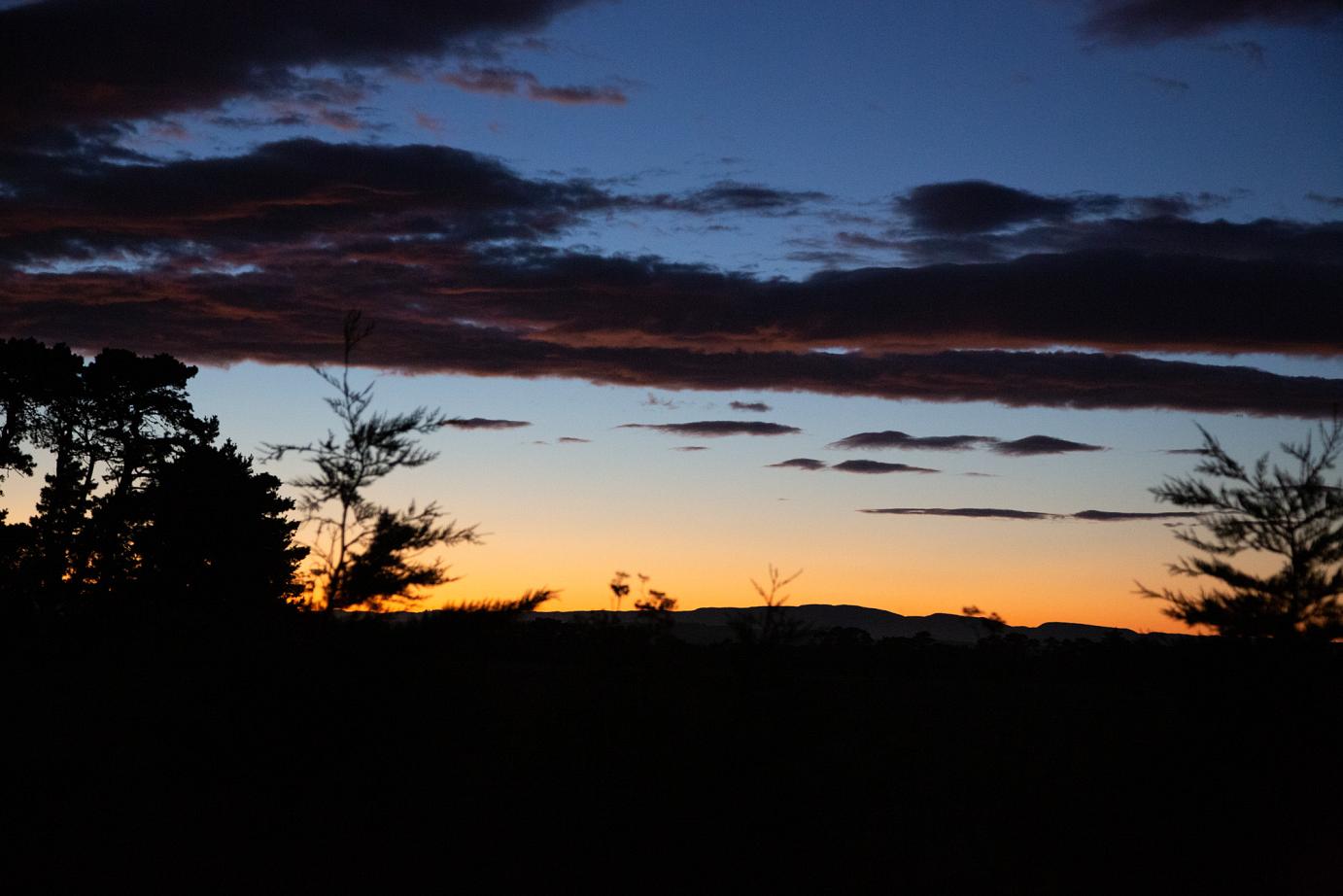 Mit einem schönen Sonnenaufgang aufgestanden, haben wir uns gleich auf den Weg nach Wellington gemacht, um rechtzeitig an der Fähre zu sein. Wir hatten noch eine Passstraße und Berufsverkehr vor uns und von daher haben wir ausreichend Puffer eingeplant. Kurz mulmig ist uns zu Beginn der Passstraße geworden, als der Motor schon ziemlich komisch-laute Geräusche von sich gegeben hat, die sich aber nach wenigen Minuten mit einem ´Plopp´ wieder normalisierten.