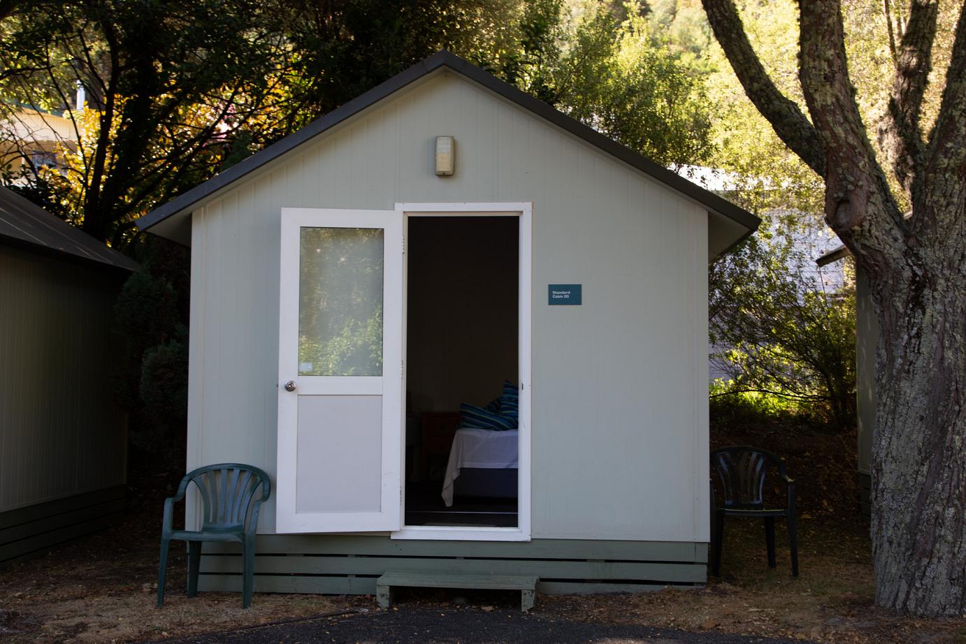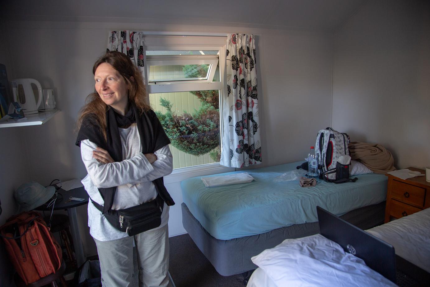 Die wirklich sehr freundlichen Menschen von der Werkstatt haben versucht, auf Kosten der Campervan-Company eine Unterkunft für uns zu finden – aber Mitte Hauptsaison – alles ausgebucht. Die haben bestimmt alle 30 Adressen in Picton abtelefoniert, bis es dann eine Standard-Cabin im Holiday-Park wurde.