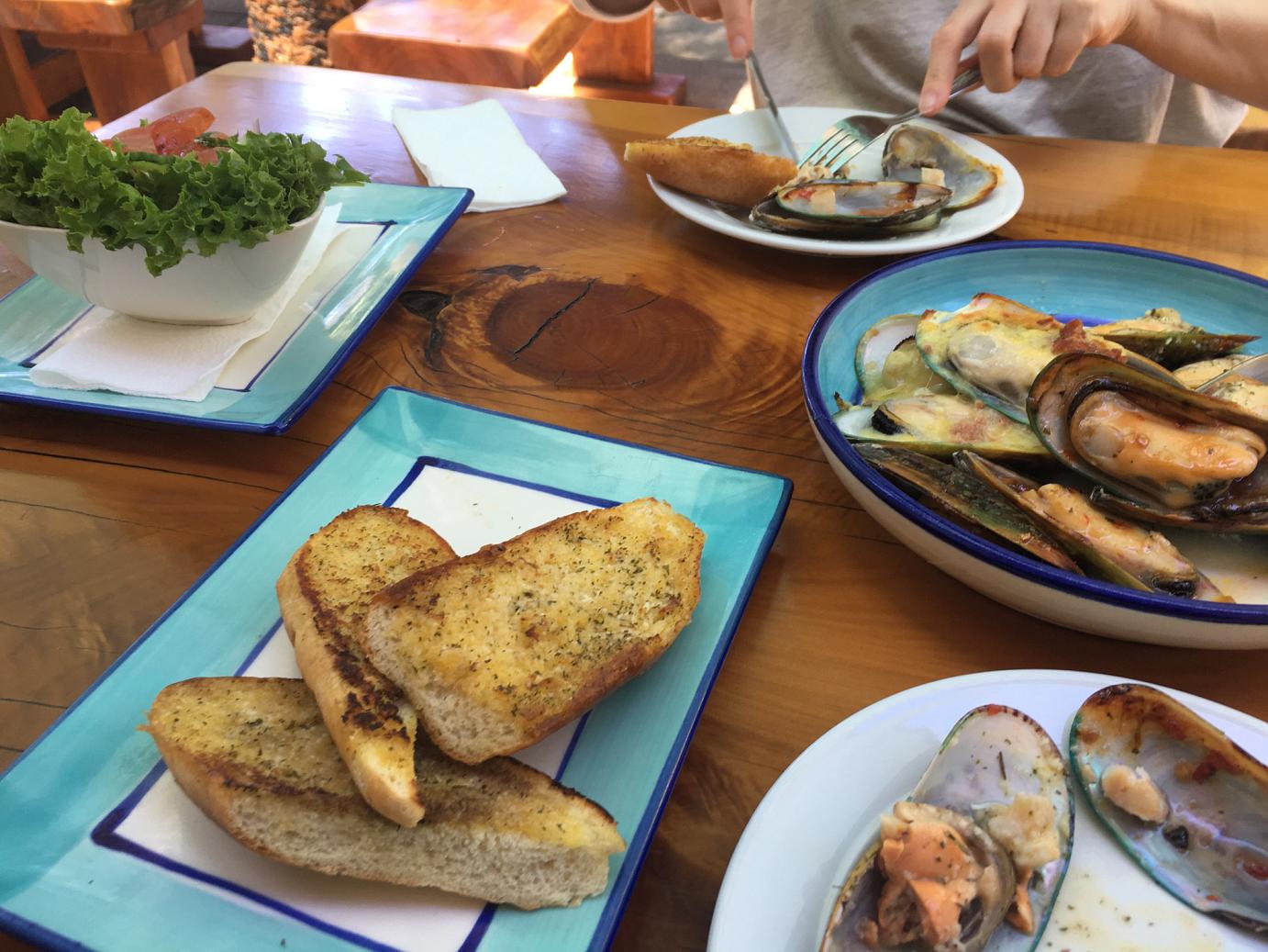 Hoffnungsvoll sind wir weiter Richtung Cable Bay gefahren und haben in Havelock feine Greenlip-Muscheln im Garten des Mussel Pots genossen. Im Café gegenüber haben wir noch den ersten Cappuccino des Tages zu uns genommen und sind dann zu einem schön ruhigen Campingplatz weitergefahren.