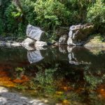 Aber wir finden schon unsere Plätzchen, wo wir entkommen können. So auch unser Trip zu den Oparara-Arches, den wir am nächsten Tag unternommen haben. Kalksteinfelsen mittem im Regenwald. 1,5 Stunden nördlich von Westport. Eine 16 km teilweise sehr unübersichtliche Schotterstraße mit Höhenbeschränkung (wir sind gerade noch so durchgerutscht) führt dort hin.
