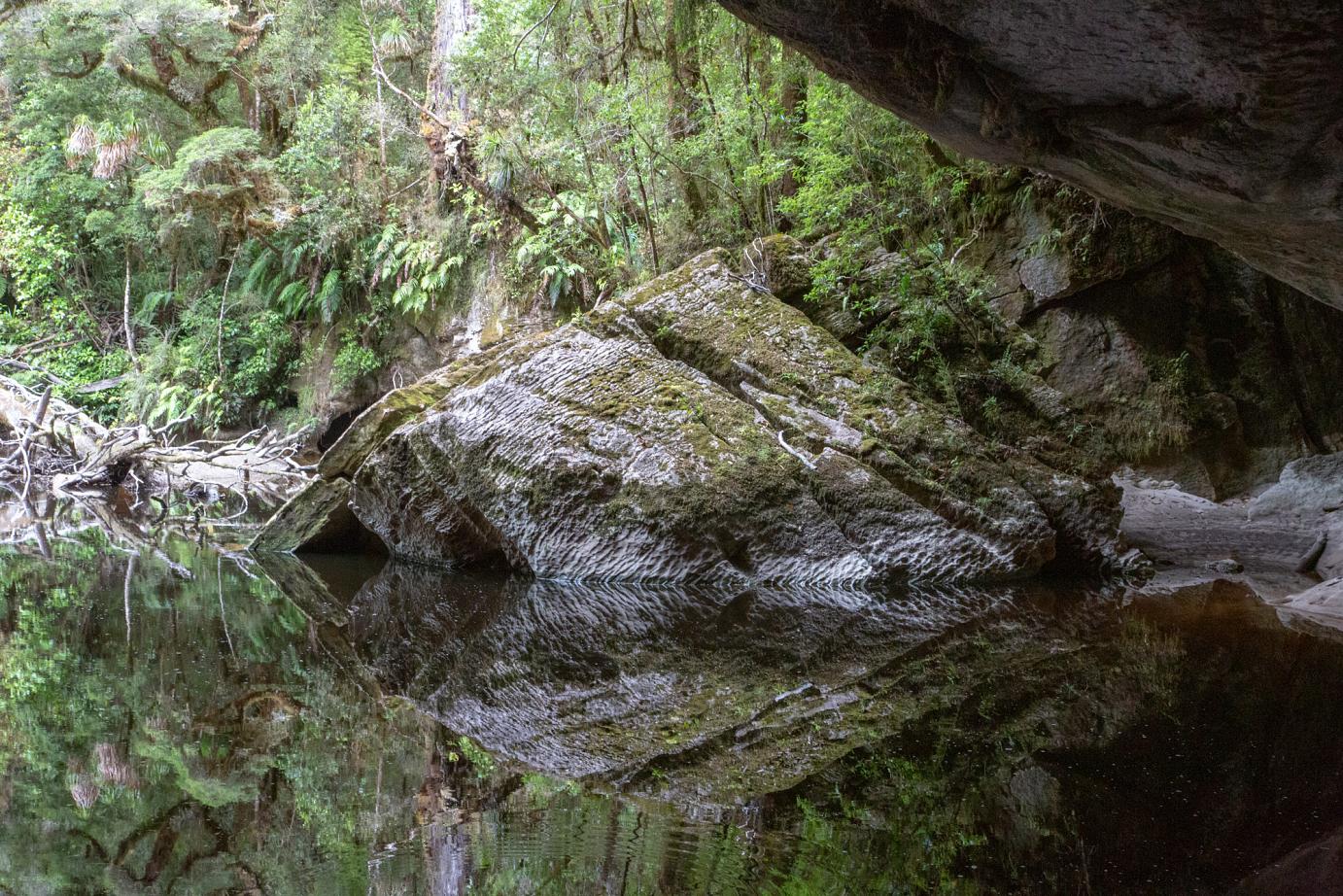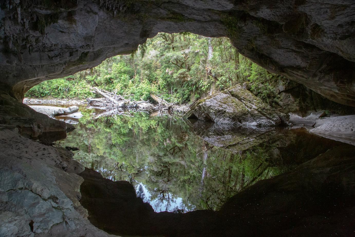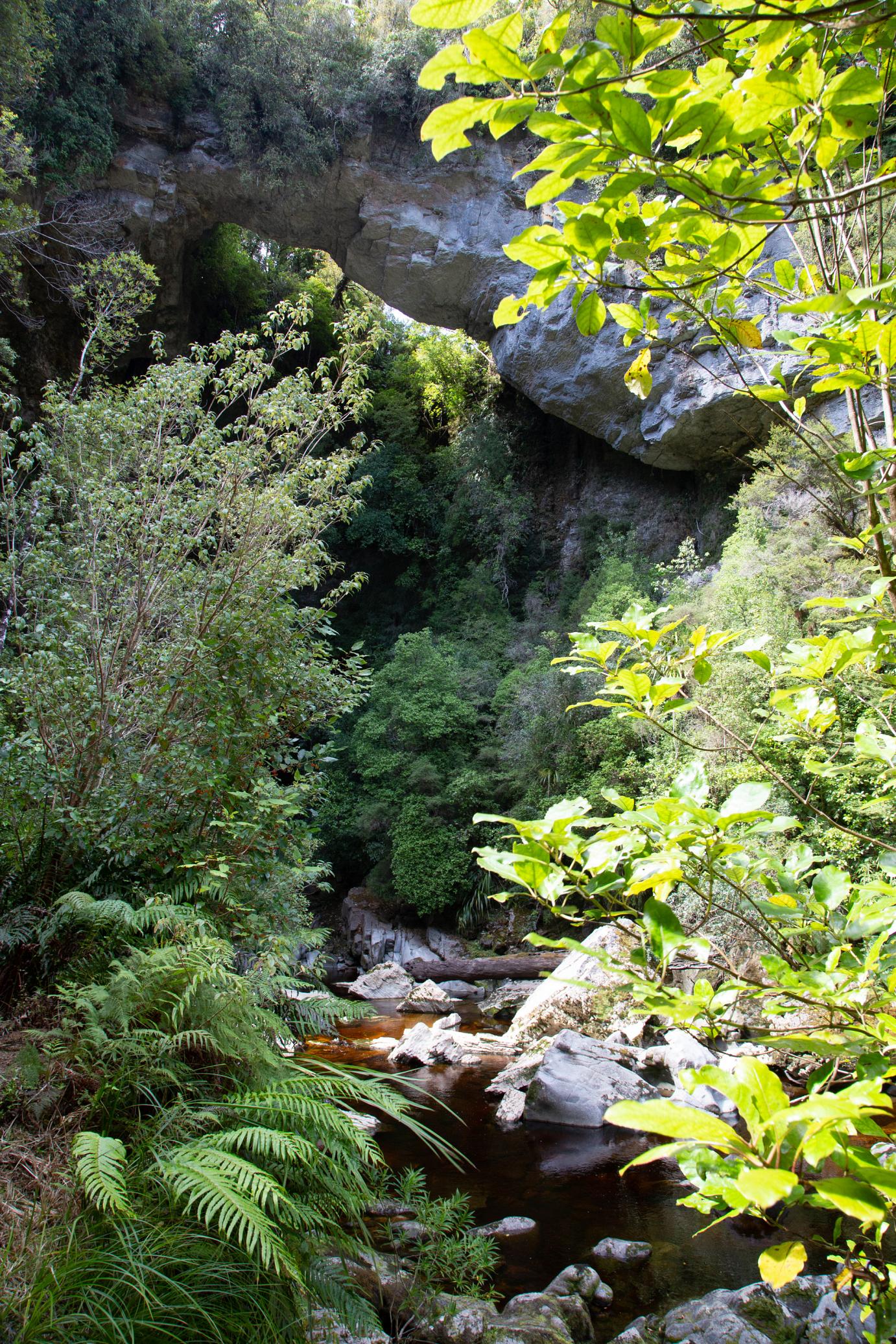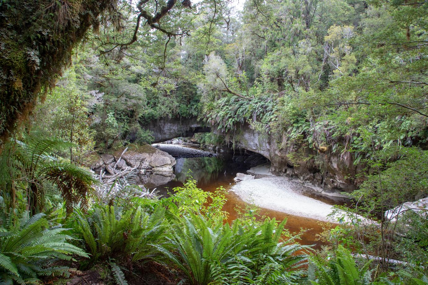 Aber wir finden schon unsere Plätzchen, wo wir entkommen können. So auch unser Trip zu den Oparara-Arches, den wir am nächsten Tag unternommen haben. Kalksteinfelsen mittem im Regenwald. 1,5 Stunden nördlich von Westport. Eine 16 km teilweise sehr unübersichtliche Schotterstraße mit Höhenbeschränkung (wir sind gerade noch so durchgerutscht) führt dort hin.