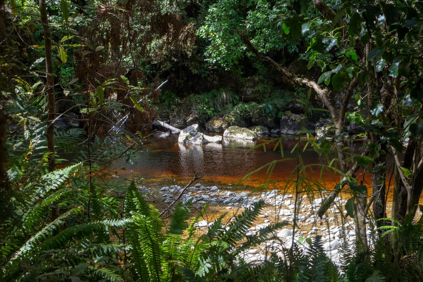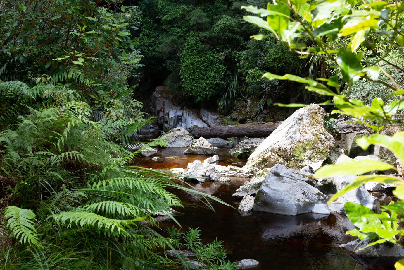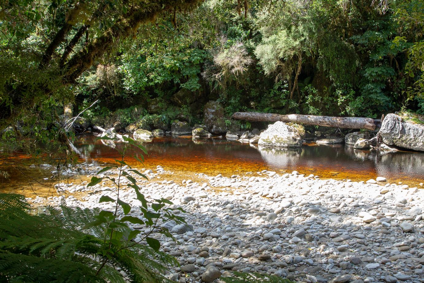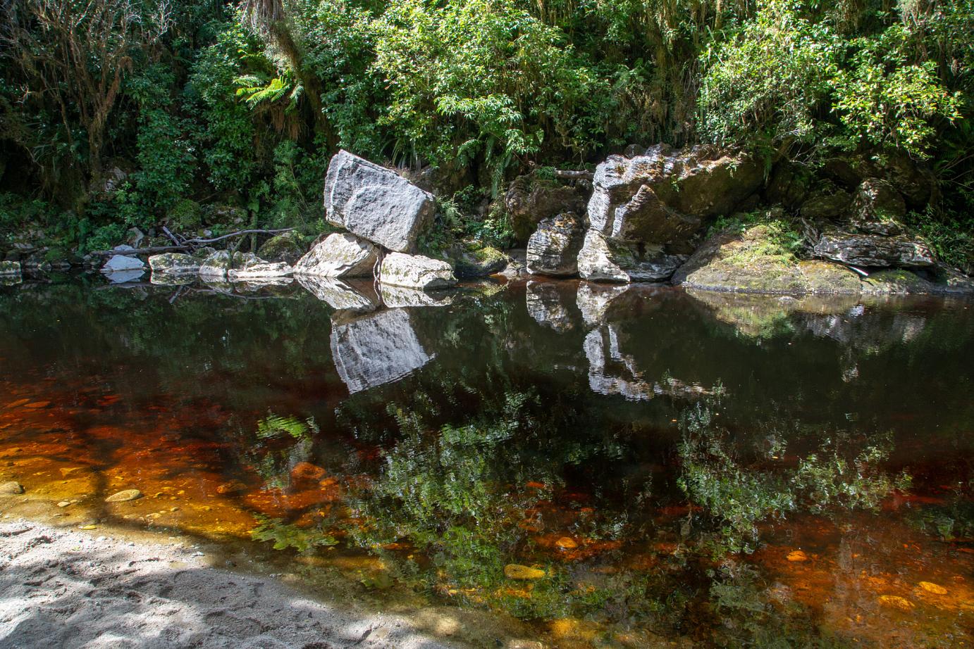Aber wir finden schon unsere Plätzchen, wo wir entkommen können. So auch unser Trip zu den Oparara-Arches, den wir am nächsten Tag unternommen haben. Kalksteinfelsen mittem im Regenwald. 1,5 Stunden nördlich von Westport. Eine 16 km teilweise sehr unübersichtliche Schotterstraße mit Höhenbeschränkung (wir sind gerade noch so durchgerutscht) führt dort hin.