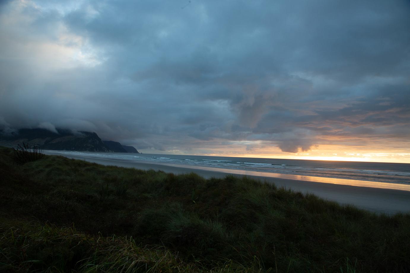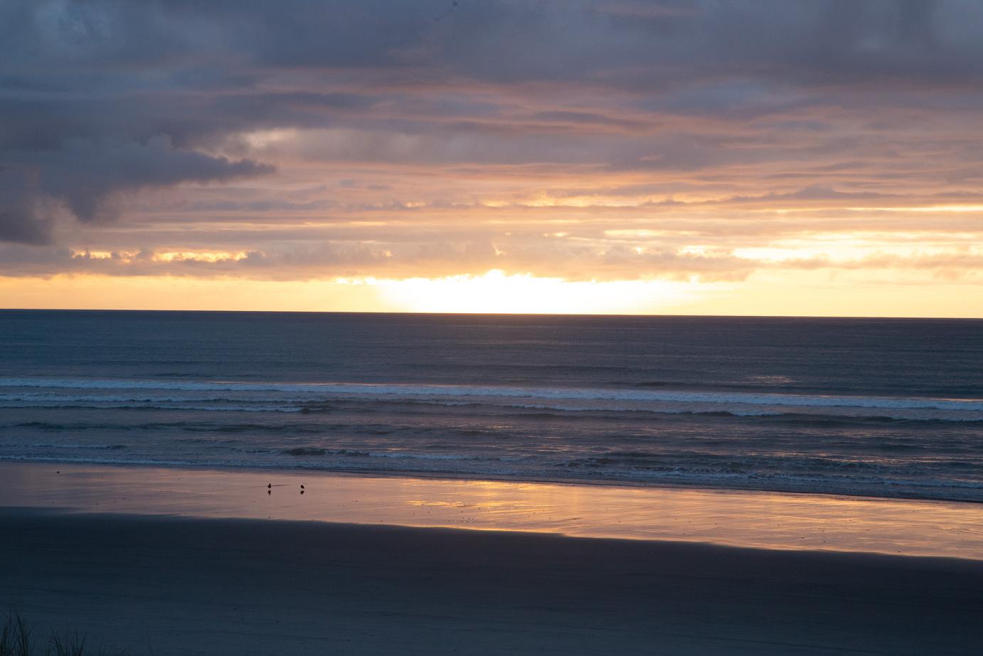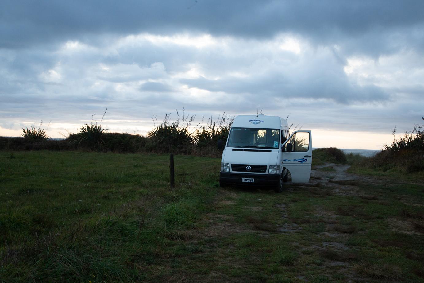 Unsere erster Freedom-Camping-Versuch weiter nördlich ist wegen der viel zu vielen Sandflies gescheitert, die uns erfolgreich in die Flucht geschlagen haben, der zweite Richtung zurück hat uns dafür einen wunderschönen Platz am Strand und einem dramatisch-kitschigen Sonnenuntergang gebracht.