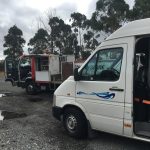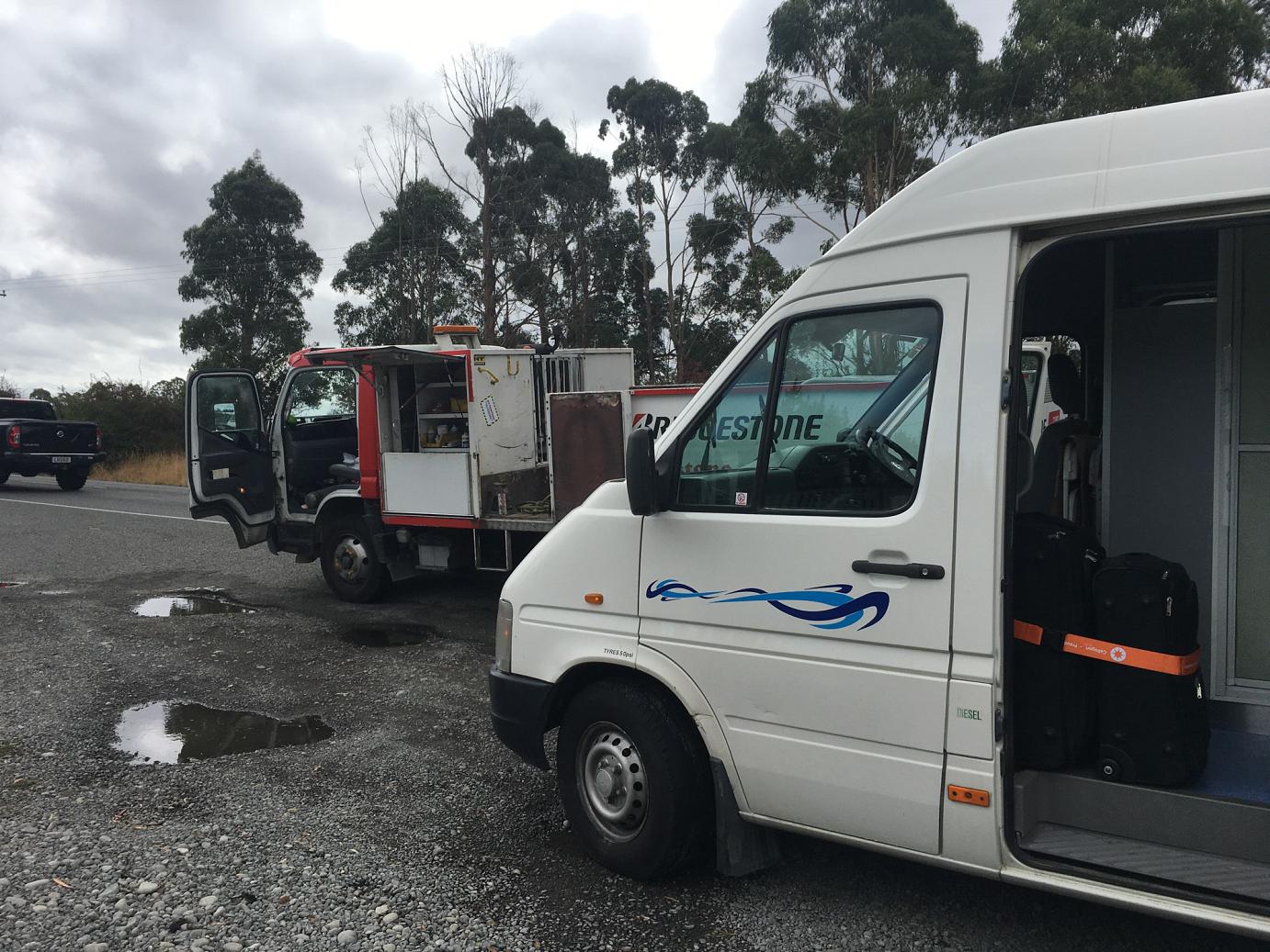Auf der Weiterfahrt zur schöneren Straße sind wir ein Stückchen auf den Motorway 1 gefahren. Nach einer guten viertel Stunde: “BAM!”. Zuerst nix gecheckt, dann war schnell klar, der rechte Vorderreifen ist geplatzt. 4. Woche – 4. Panne 🙁 Glücklicherweise blieb der Wagen stabil und wir konnten schnell in eine große Parkbucht ausweichen. Da wir immer noch mit ausreichend Erdbeer- und Schoko-Glückshormonen versorgt waren, blieben wir beide relativ entspannt. Erneut begann die Telefon-Action mit der technischen Hotline – dort wurde Stephan freundlich begrüßt, denn sind wir ja bereits bekannt.