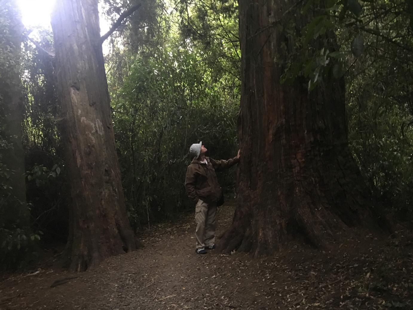 Das Wetter war inzwischen bewölkt und teilweise regnerisch, die Strecke aber dennoch schön. In Geraldine, einem kleinen Künstlerdörfchen mit einem alten Wald, haben wir einen kleinen Abendspaziergang im Talbot-Forest zu einem 1000-Jahre alten Totoara-Baum (sagt der Reiseführer 🙂 ) unternommen.