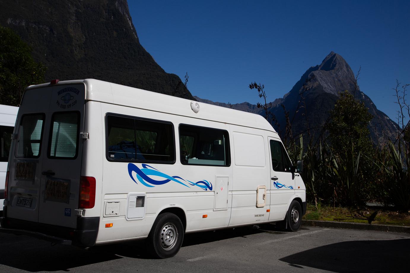 In Milford Sound darf man eigentlich nicht mehr Overnight-Campen, aber wir waren mutig und das war gut, denn auf dem Parkplatz stand: 20$ für Womos ab 20:00 Uhr - aber es war nix zum Einwerfen da und es kam auch keiner zum Kassieren, also hatten wir den Logen-Schlafplatz vor dem Sound für uns alleine 🙂
