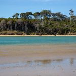 Nach einer einigermaßen guten Freedom-Nacht in einer kleinen Felsbucht sind wir am nächsten Tag mit Traum-Wetter weitergefahren. Per Zufall sind wir zum Tahakopa-Beach eingebogen, wo der gleichnamige Fluss ins Meer fließt – einfach superschön. Weil sie auf dem Weg lagen, haben wir noch die Matai-Falls mitgenommen, ein kleiner Weg, 20 Minuten hin- und zurück. Nett, aber jetzt ist unser Pensum an Wasserfällen auch gedeckt 🙂