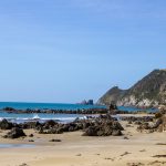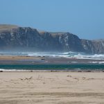 Diesmal sind wir erstaunlich schnell hingekommen, denn die Straße war asphaltiert und auf dem großen Parkplatz vor dem neuen Rezeptionsgebäude inkl. Café standen schon 2 Reisebusse und etliche Womos 🙁 Na gut, Cappuccino haben wir uns geholt, der war auch ganz gut, aber zwischen den nicht wenigen Menschen am Strand rumrennen wollten wir dann doch nicht. Also haben wir noch eine kurze Runde auf dem Klippenhügel gedreht und sind einigermaßen erstaunt (um es freundlich zu sagen) weitergezogen.
