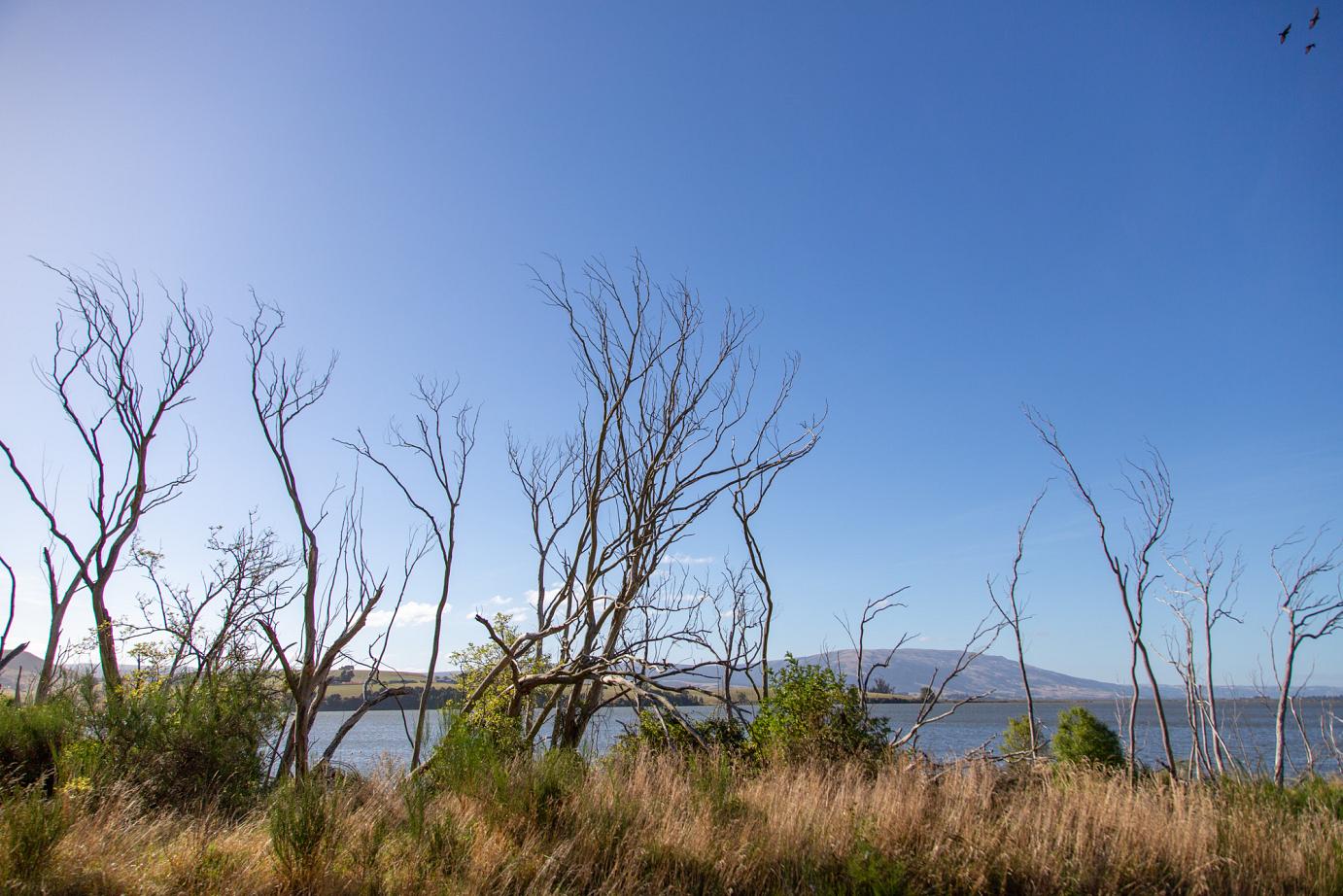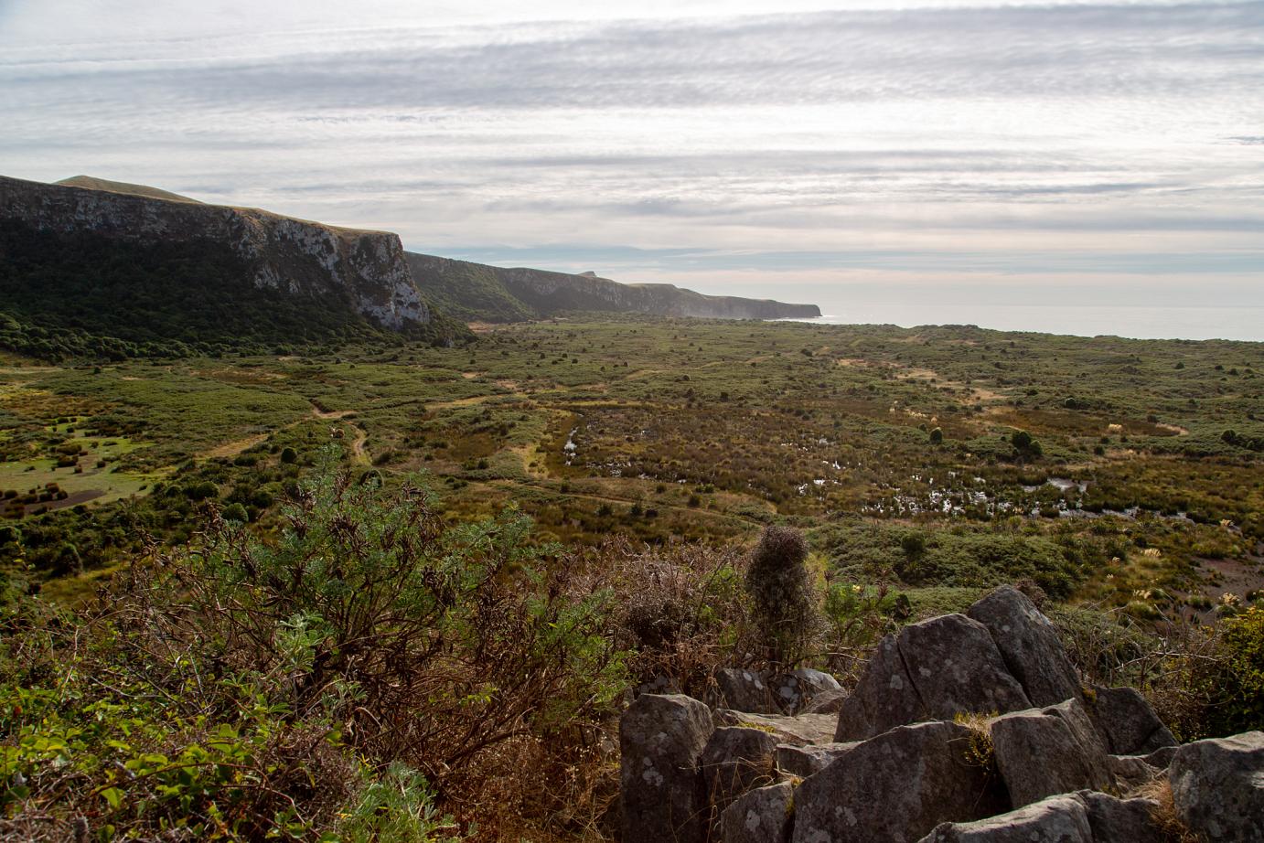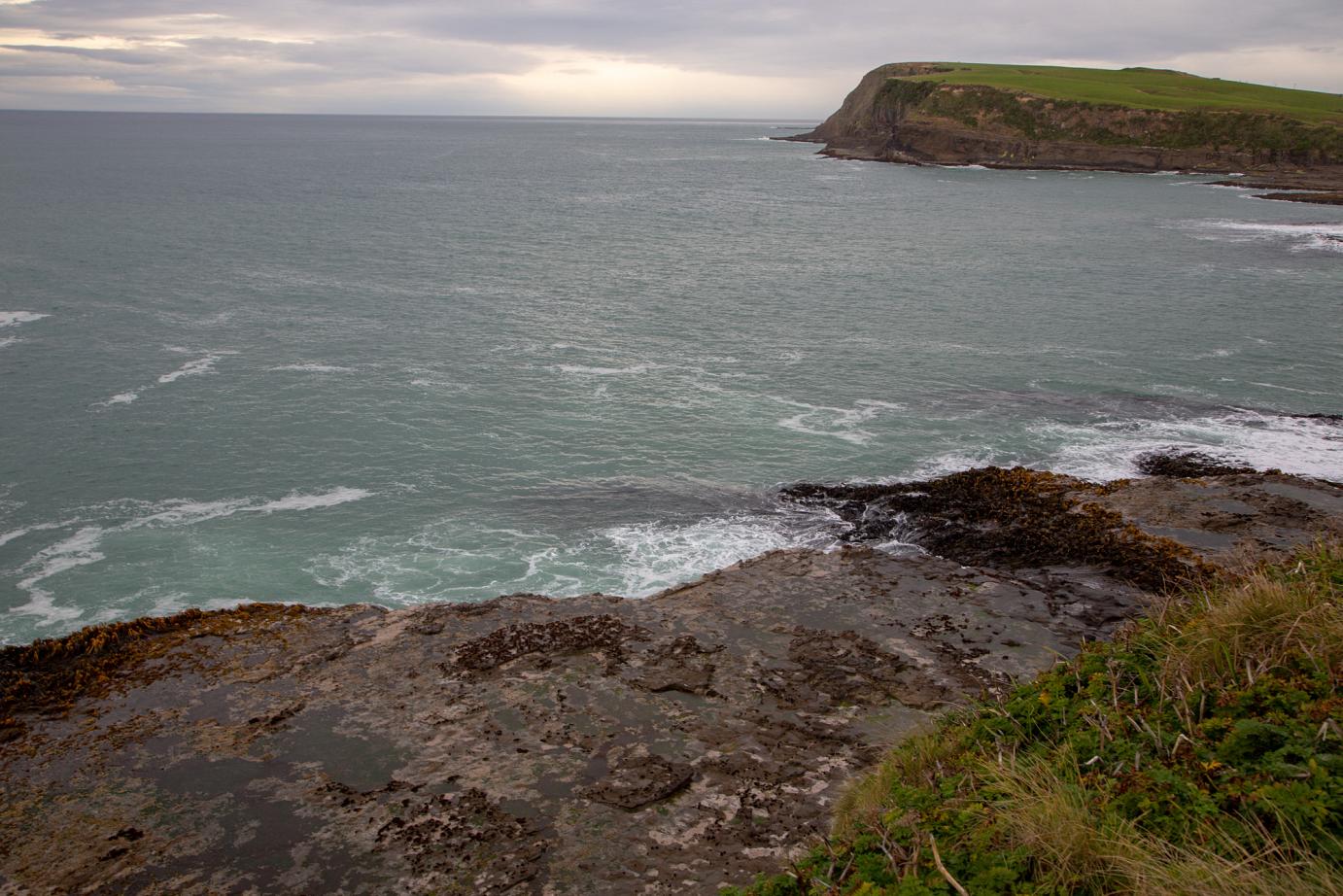 Zuerst haben wir einen Abstecher nach Curio-Bay gemacht. Wir dachten, wir setzen unsere “Pause” dort fort, weil wir ja von Riverton wegmussten. 2007 hatten wir hier eine sehr romantisch, verregnete Übernachtung auf dem dortigen Campingplatz, der nach einer etwa 16 km langen Schotterstraße erreichbar war. Es gibt hier u.a. einen versteinerten Wald, den Fossil Forest, bei dem wir damals im Regen spazieren waren.
