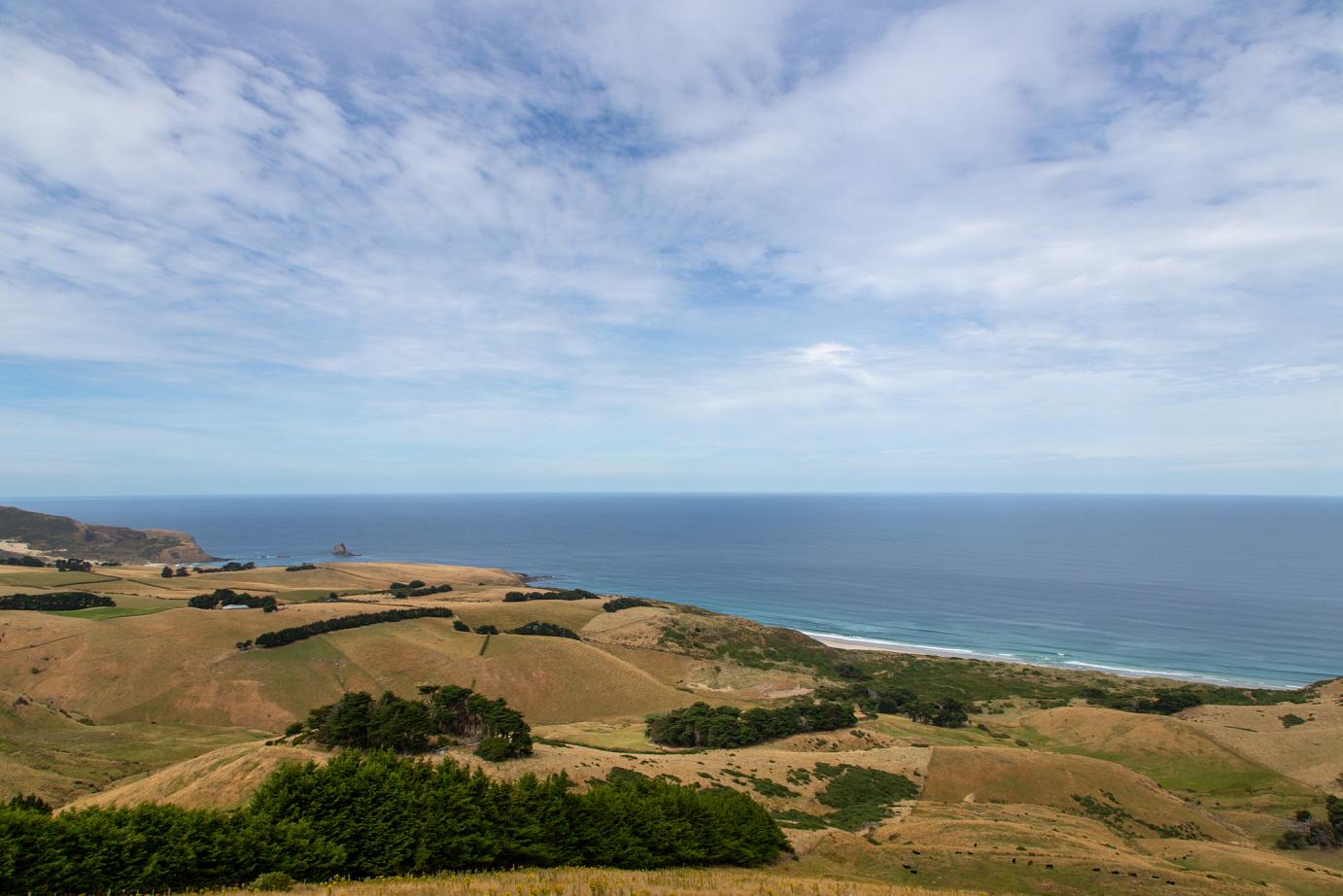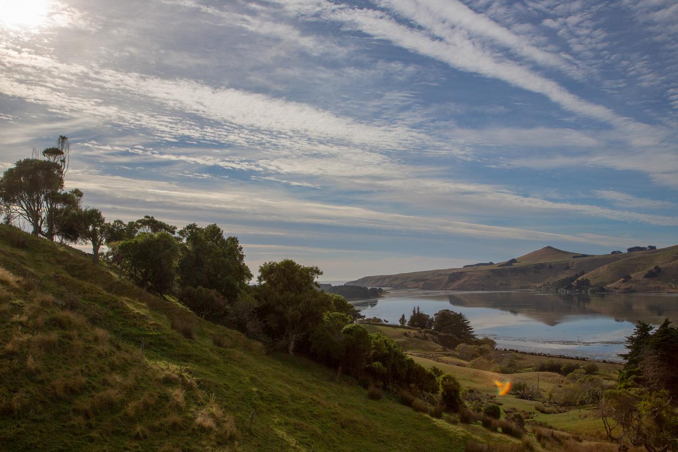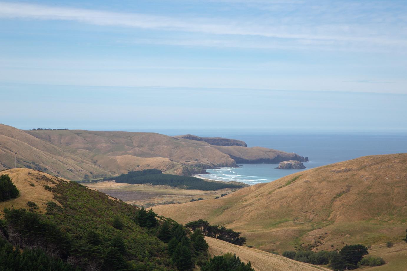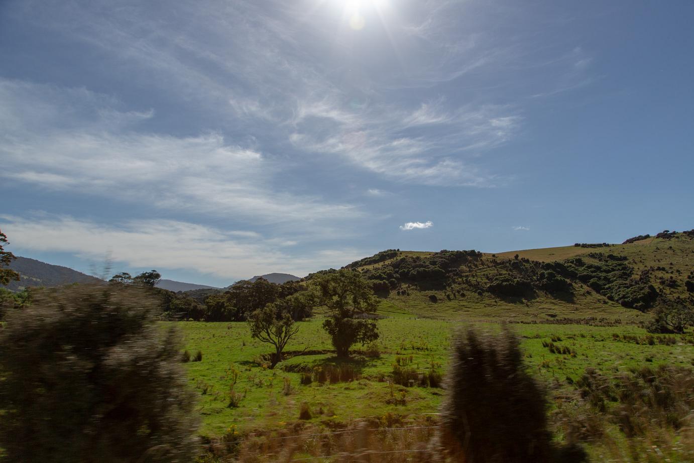 Der erste Kaffee nach dieser Nacht brachte nix, also sind wir noch etwas schlaftrunken bei zunächst etwas wolkigem Wetter weiter Richtung Dunedin im Westen der Südküste gedüst.