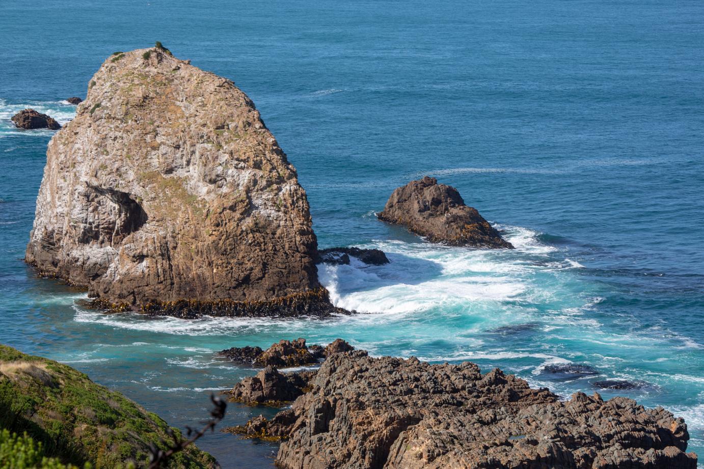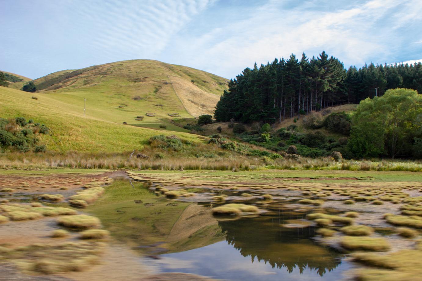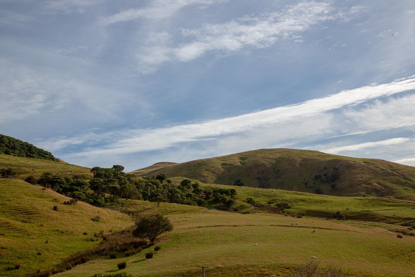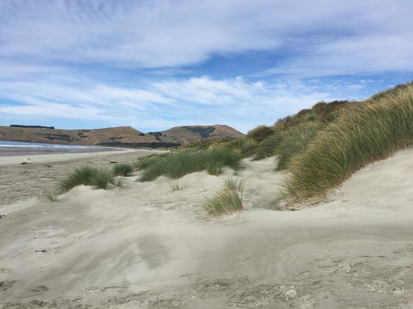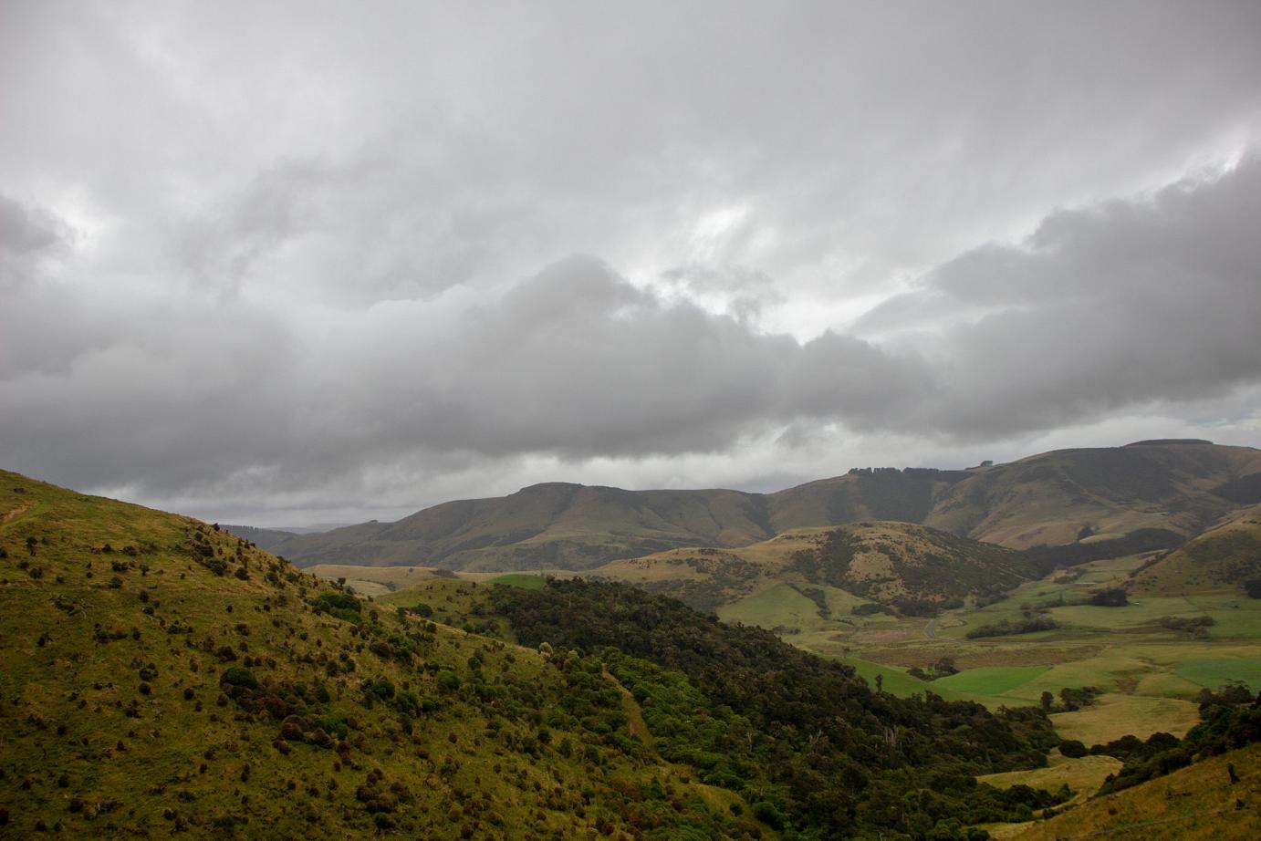 Der erste Kaffee nach dieser Nacht brachte nix, also sind wir noch etwas schlaftrunken bei zunächst etwas wolkigem Wetter weiter Richtung Dunedin im Westen der Südküste gedüst.
