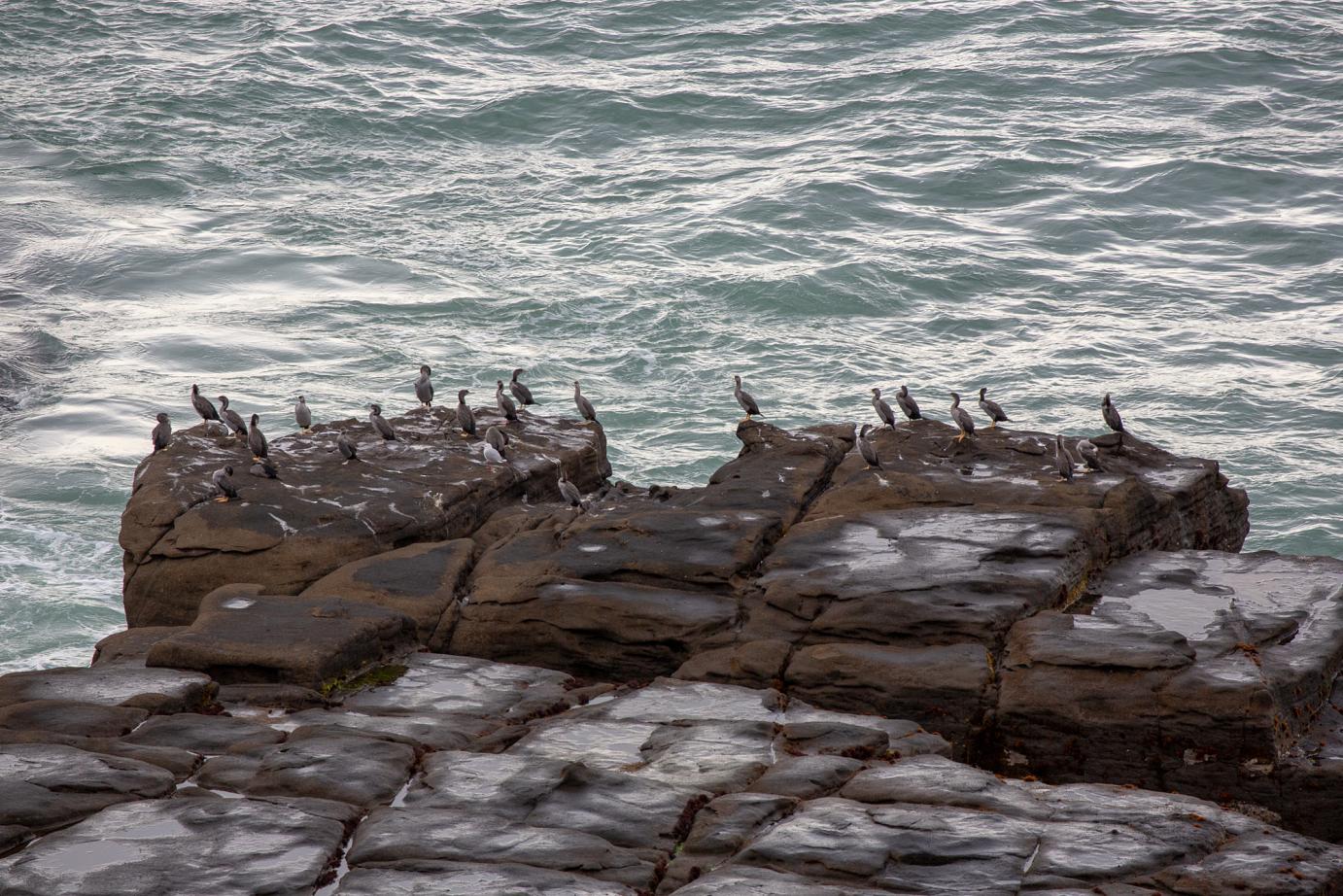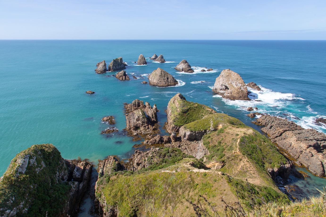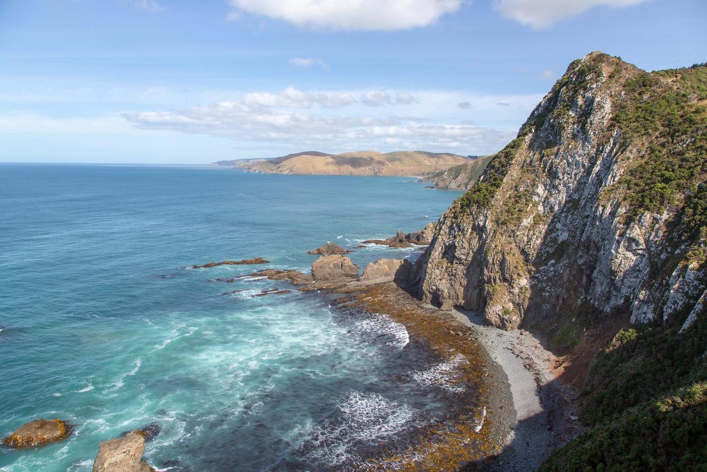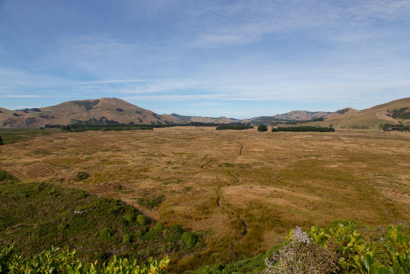 Der erste Kaffee nach dieser Nacht brachte nix, also sind wir noch etwas schlaftrunken bei zunächst etwas wolkigem Wetter weiter Richtung Dunedin im Westen der Südküste gedüst.