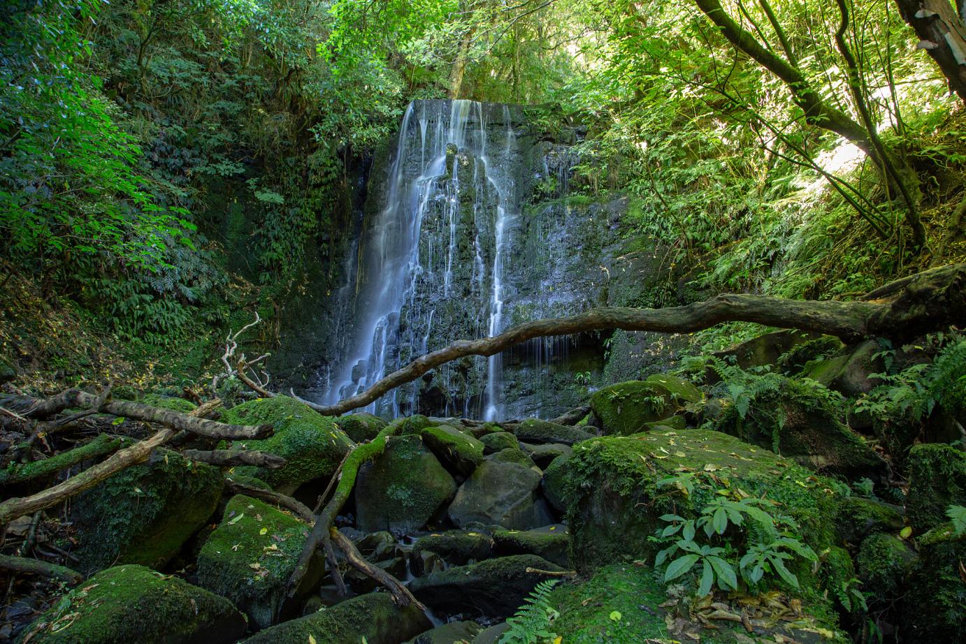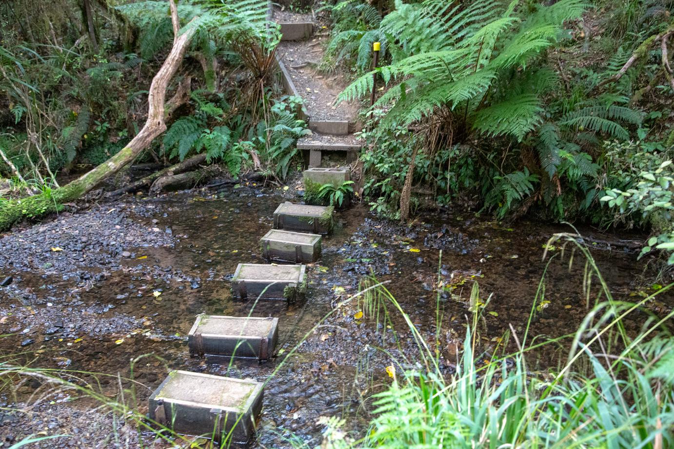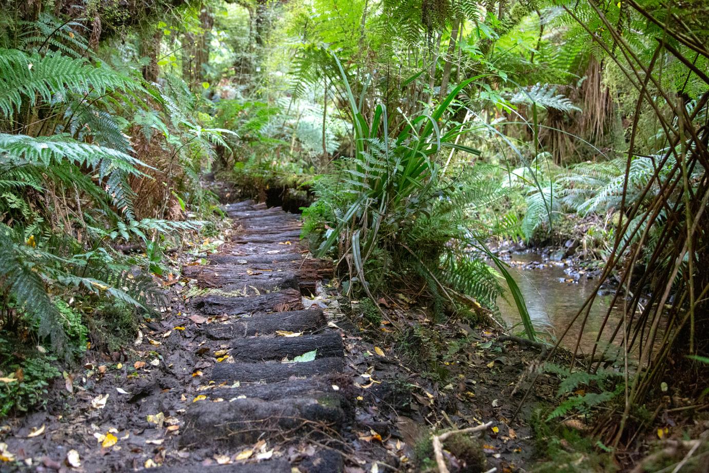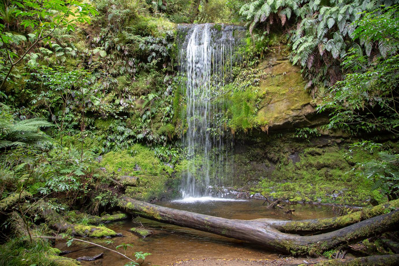 Den Schock haben wir in einem netten Landhaus-Café verdaut, mit Scones und Cappuccino. Auf dem weiteren Weg haben wir einen richtig coolen Dschungel-Track gefunden, an dessen Ende ein netter Wasserfall auf uns gewartet hat. Der enge Pfad zu den Koropuku Falls war mit Farn-Stämmen gelegt, die sehr weich und griffig waren – das war bisher irgendwie der schönste Regenwald-Pfad.